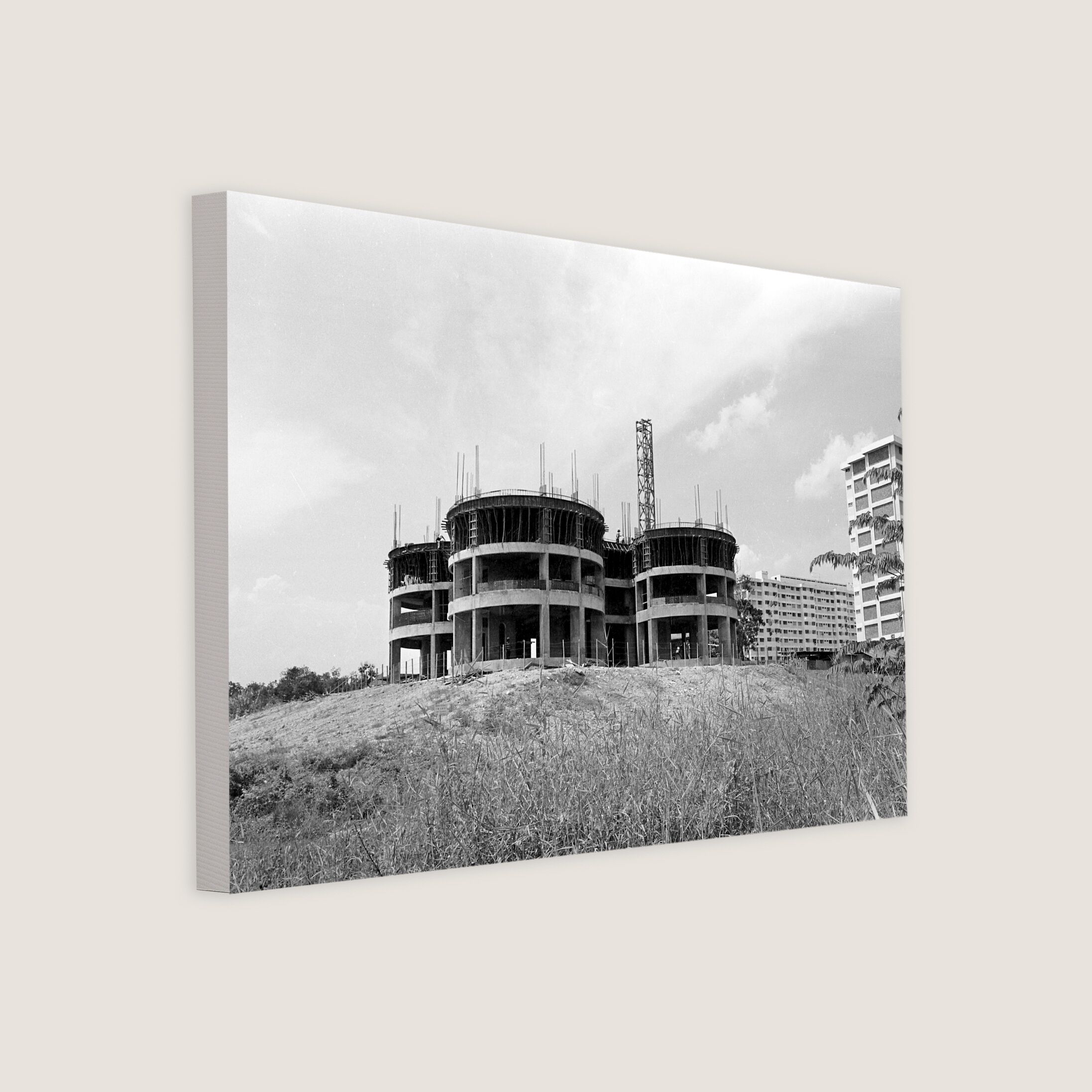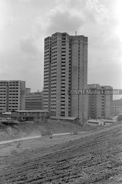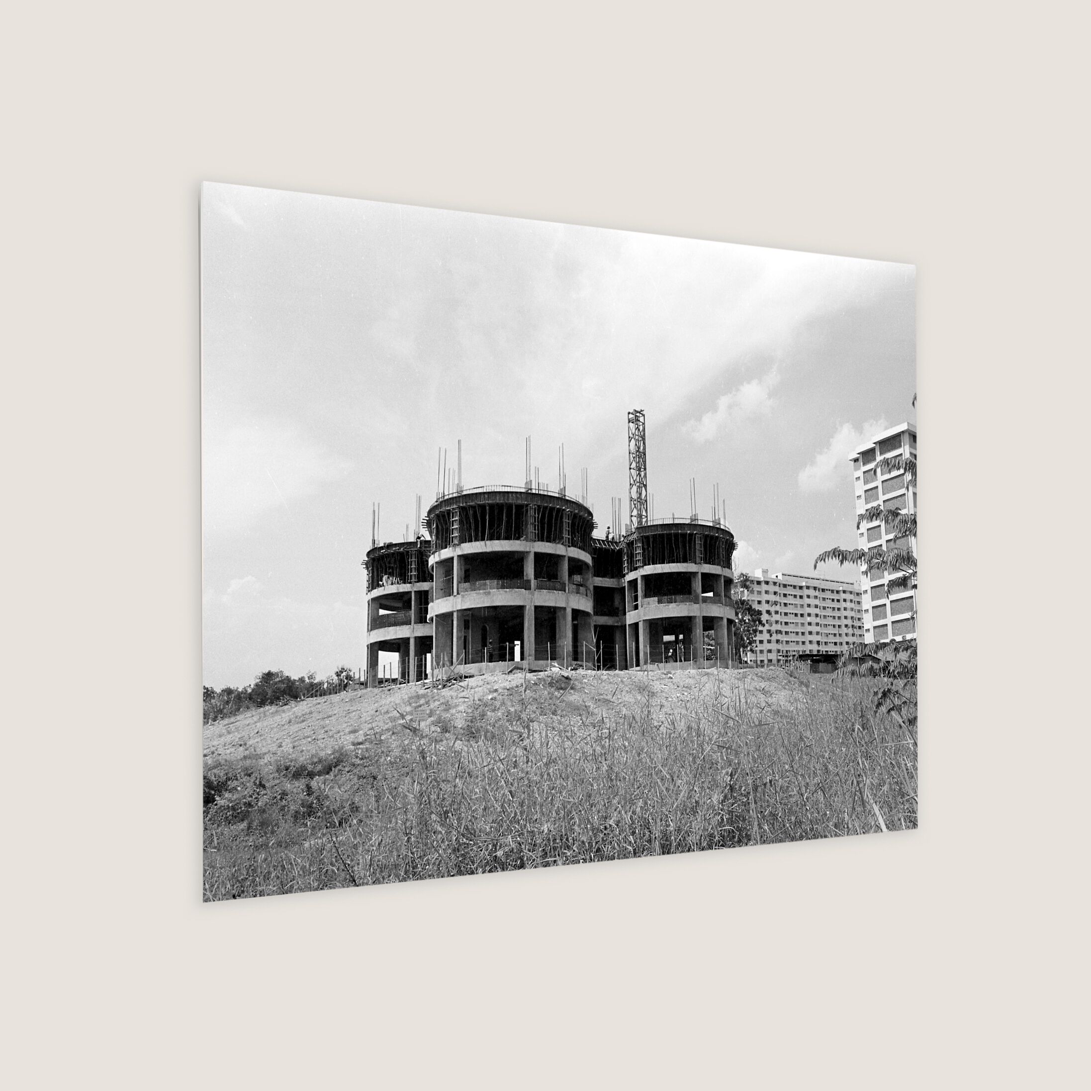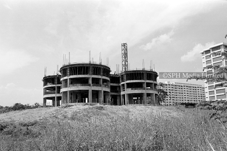 This was a new HDB circular block under construction at Ang Mo Kio, 1 August 1979. The initial plan was to build 4 blocks but due to cost effectiveness, only one block was built in the end.