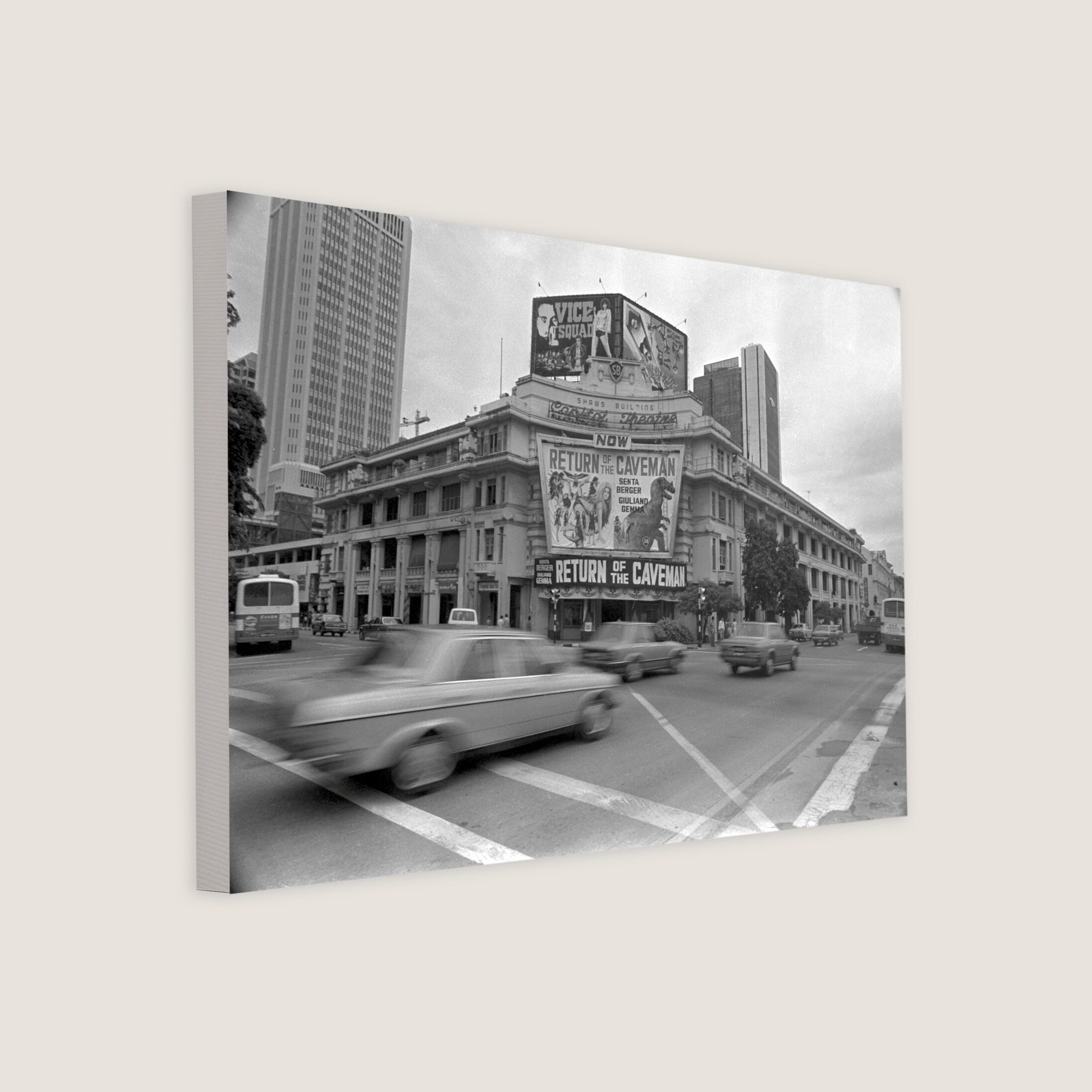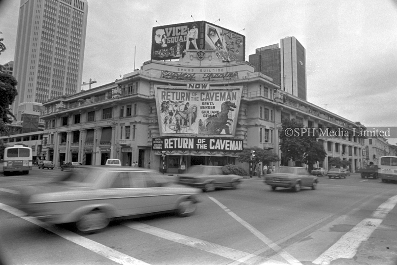 Cars and vehicles pass by the facade of the old Shaw Building which was later conserved by the government in 1987 and named Capitol Theatre. It was closed in 1998 and reopened in 2015 after renovation work. The building holds a neoclassical architectural style.