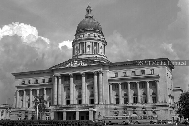 The former Supreme Court at St Andrew’s Road, pictured on 26 April 1965, was completed in 1939 as the last grand classical structure of colonial Singapore. Serving as the nation’s highest court until 2005, it housed major cultural events and, in 2015, was reborn as the National Gallery Singapore.