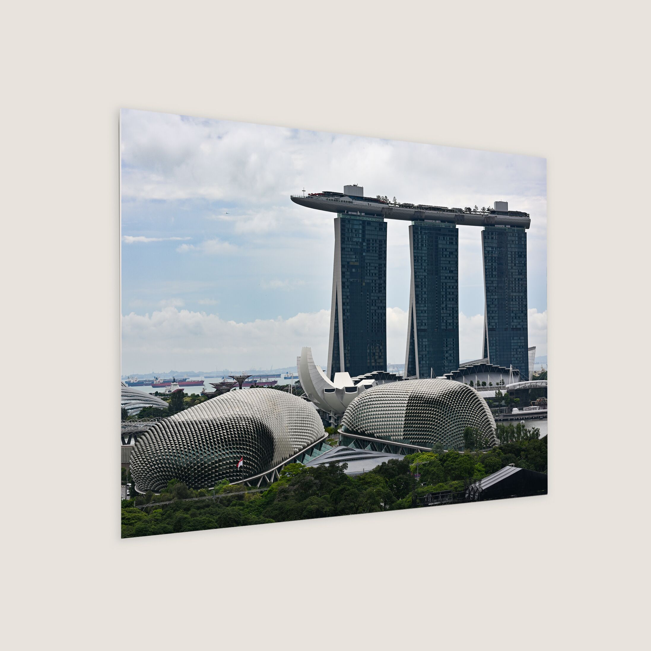 The Marina Bay area, once part of the open sea, was reclaimed through major land works beginning in the 1970s and continuing into the early 1990s. Today, the two prominent buildings that rise from this reclaimed ground stand as iconic landmarks along the Singapore waterfront.