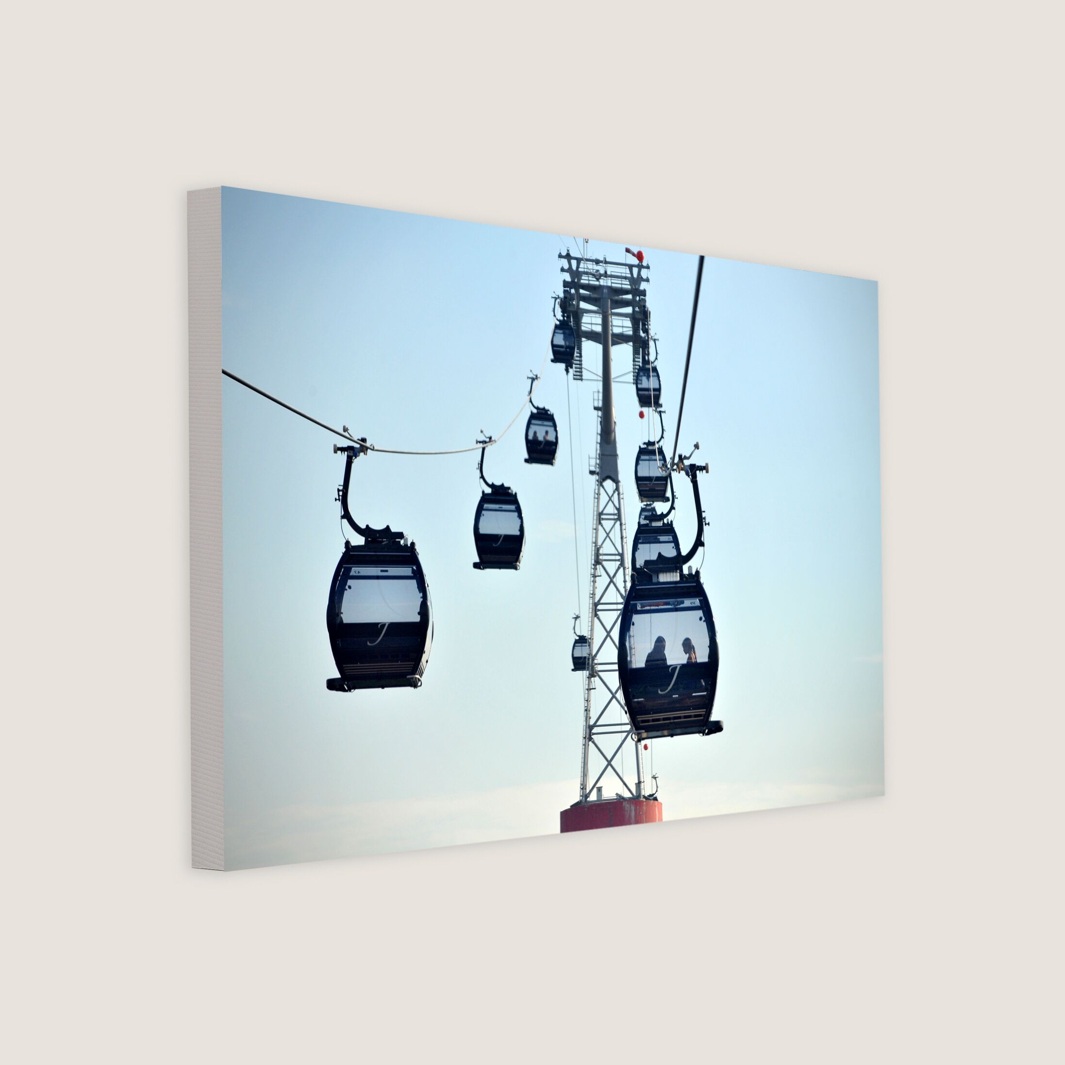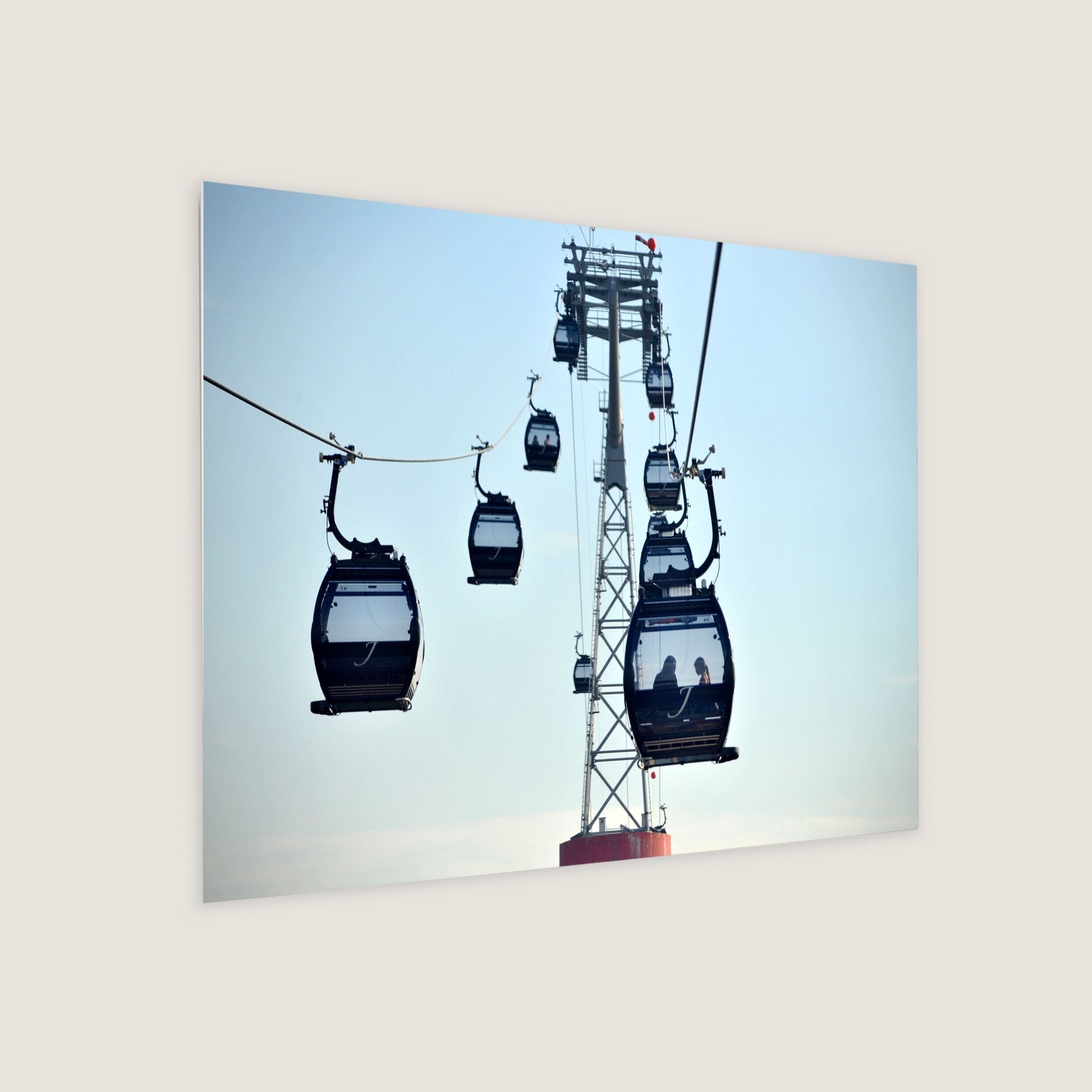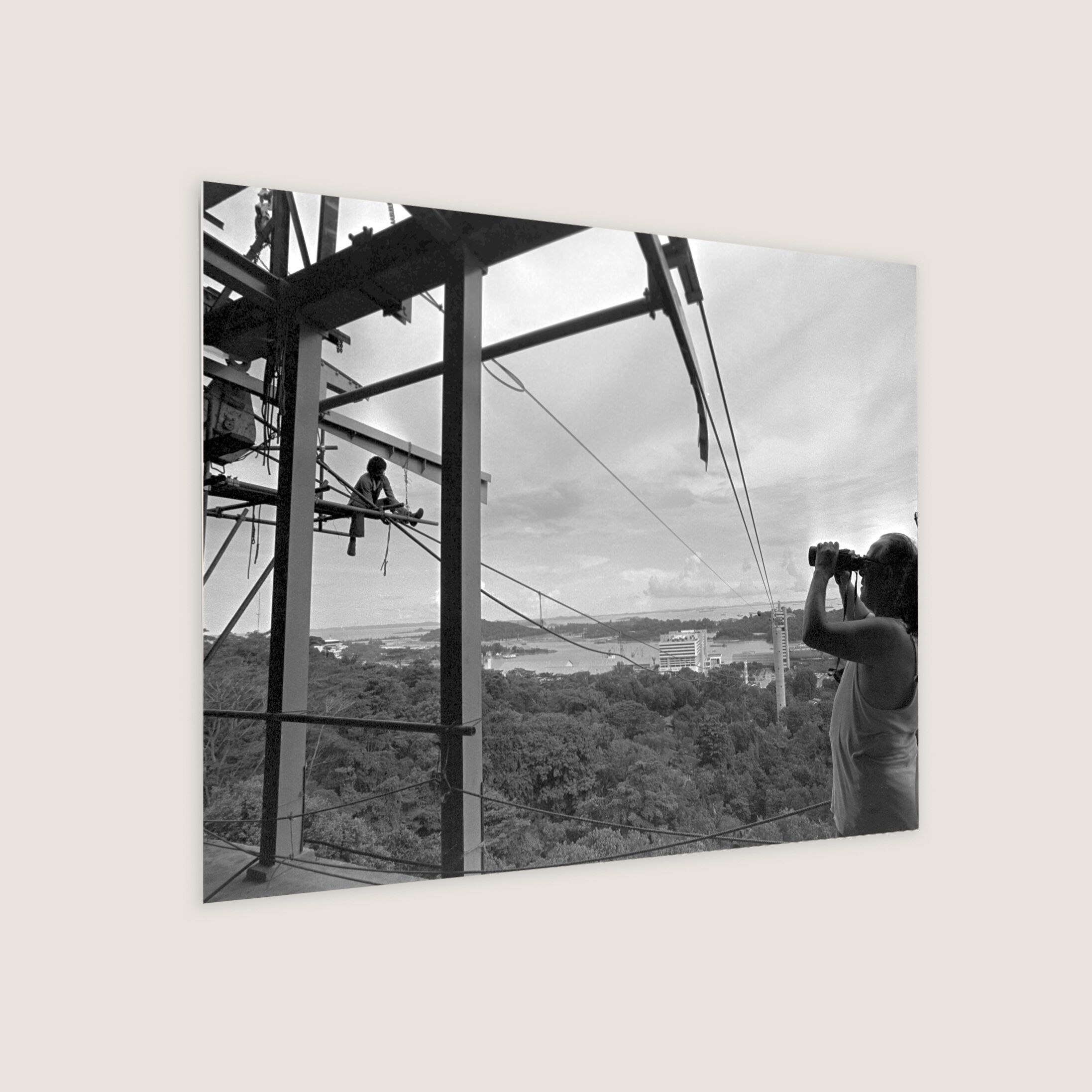 In 2014, the Singapore Cable Car system consisted of two independent lines, the Mount Faber Line, which provided services between Mount Faber and Sentosa stations, connecting Singapore's main island and Sentosa Island. The photos here show cable cars traveling between Mount Faber and Sentosa.