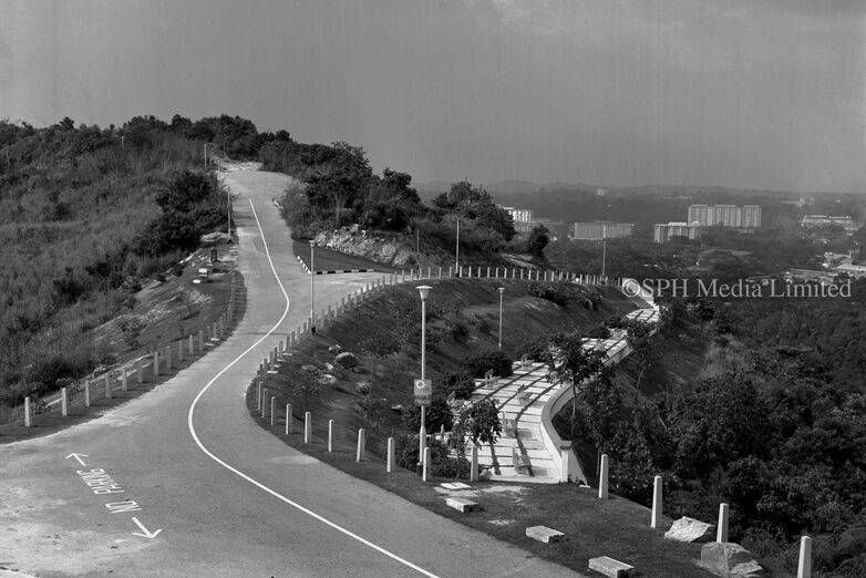 Opened on 17 January 1965, Mount Faber Park is one of the oldest parks in Singapore. The park covers a land area of 56 hectares and is home to a variety of flora and fauna. Mount Faber, together with at least seven small hills, forms the Southern Ridges. Before the development of present-day Mount Faber, this was what the top looked like. The road leads to a Buddhist temple at the summit of another hill, the former Thousand Buddha Temple.