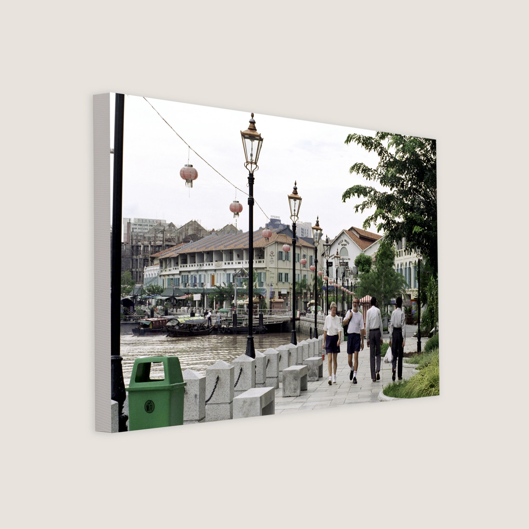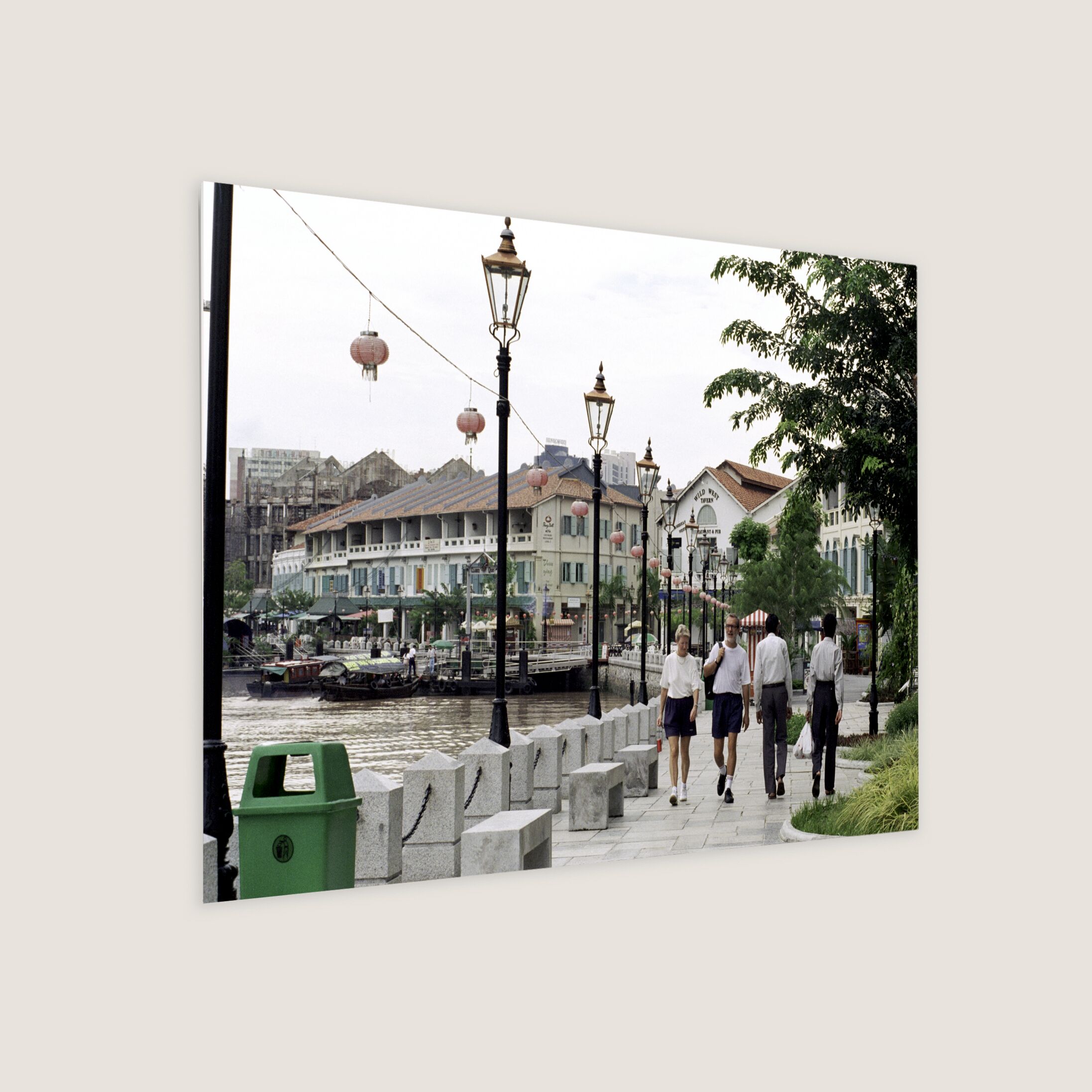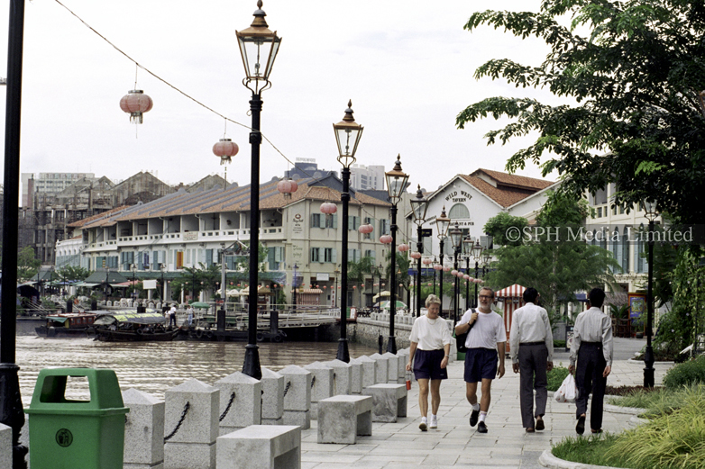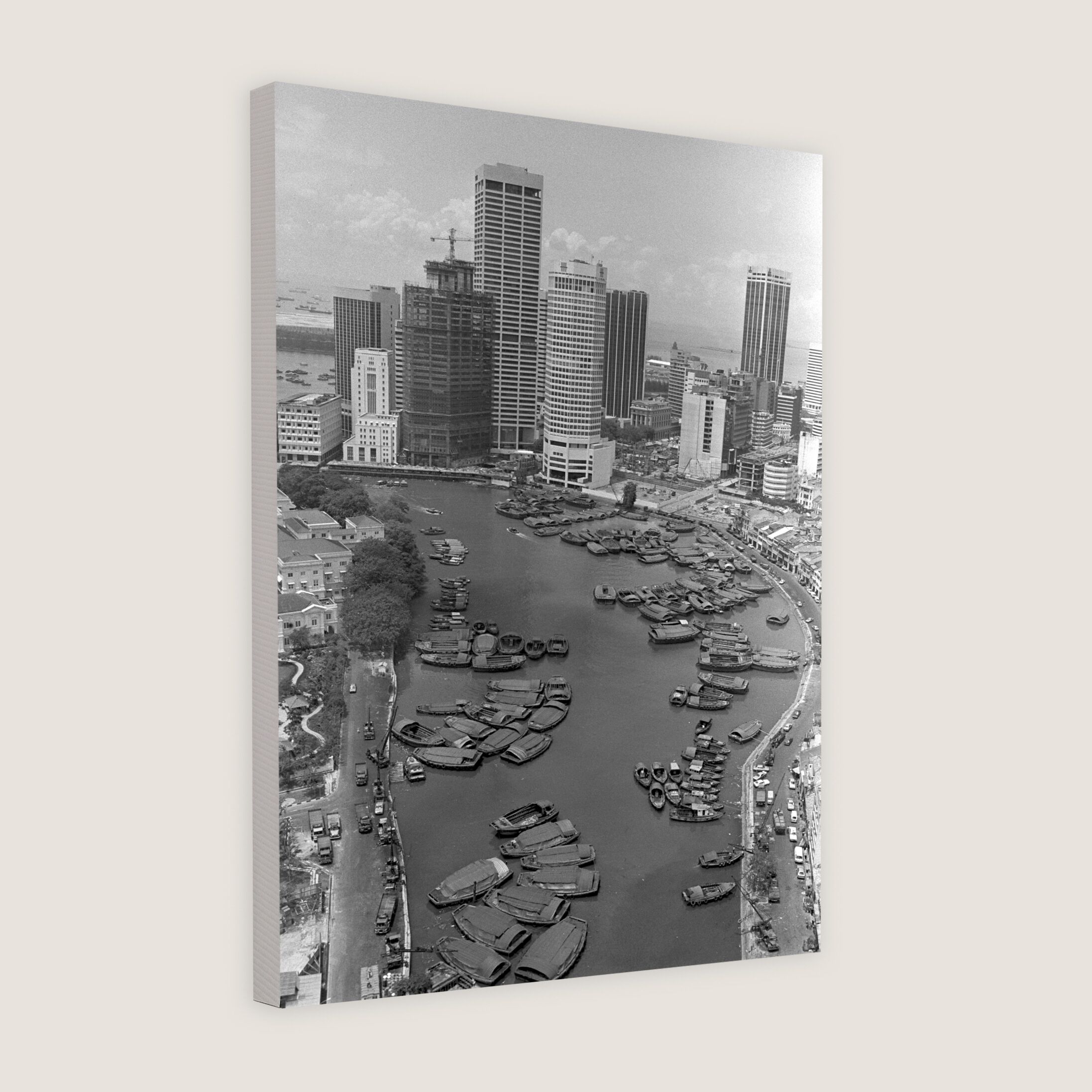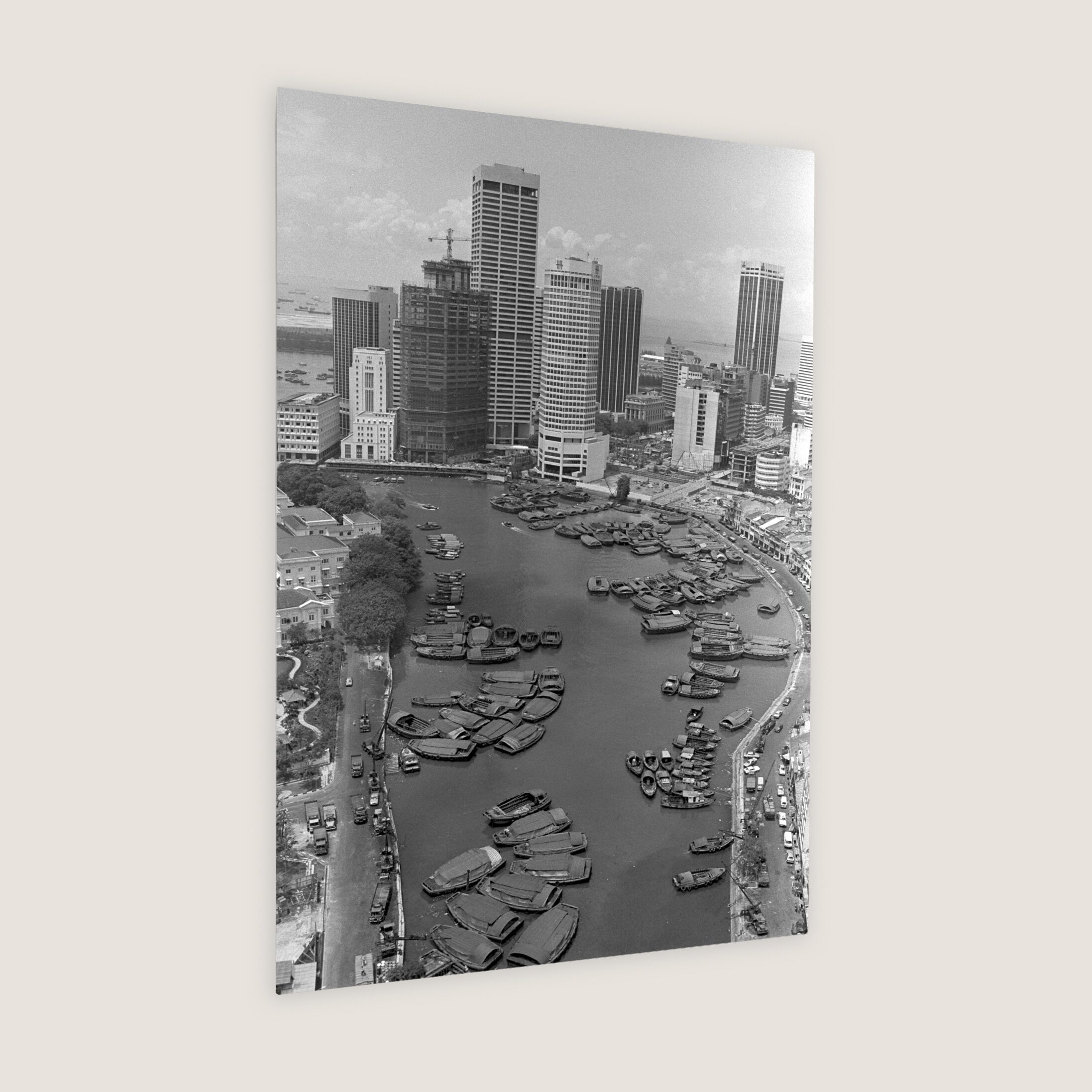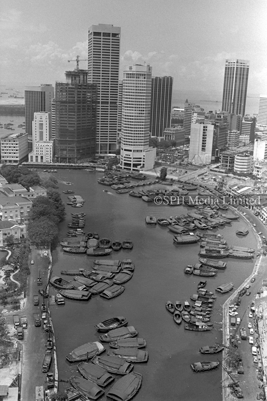 The photo captures Boat Quay after the Singapore River cleanup, marking a turning point in the area’s transformation. This area of the Singapore River is known as the 'Carp's Belly', due to its unique shape. Once teeming with trade and tongkangs, the riverfront entered a new chapter as part of wider urban redevelopment plans for the historic waterway and its surroundings.
