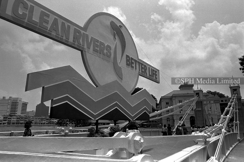 A striking mural on Cavenagh Bridge featured two orange fish in Chinese brush strokes, swimming over clear blue waters. This artwork, part of the "Clean Rivers, Better Life" campaign, symbolised the success of the decade-long Singapore River cleanup. On 2 September 1987, the river was officially declared clean, and its transformation was celebrated with a five-day carnival.
