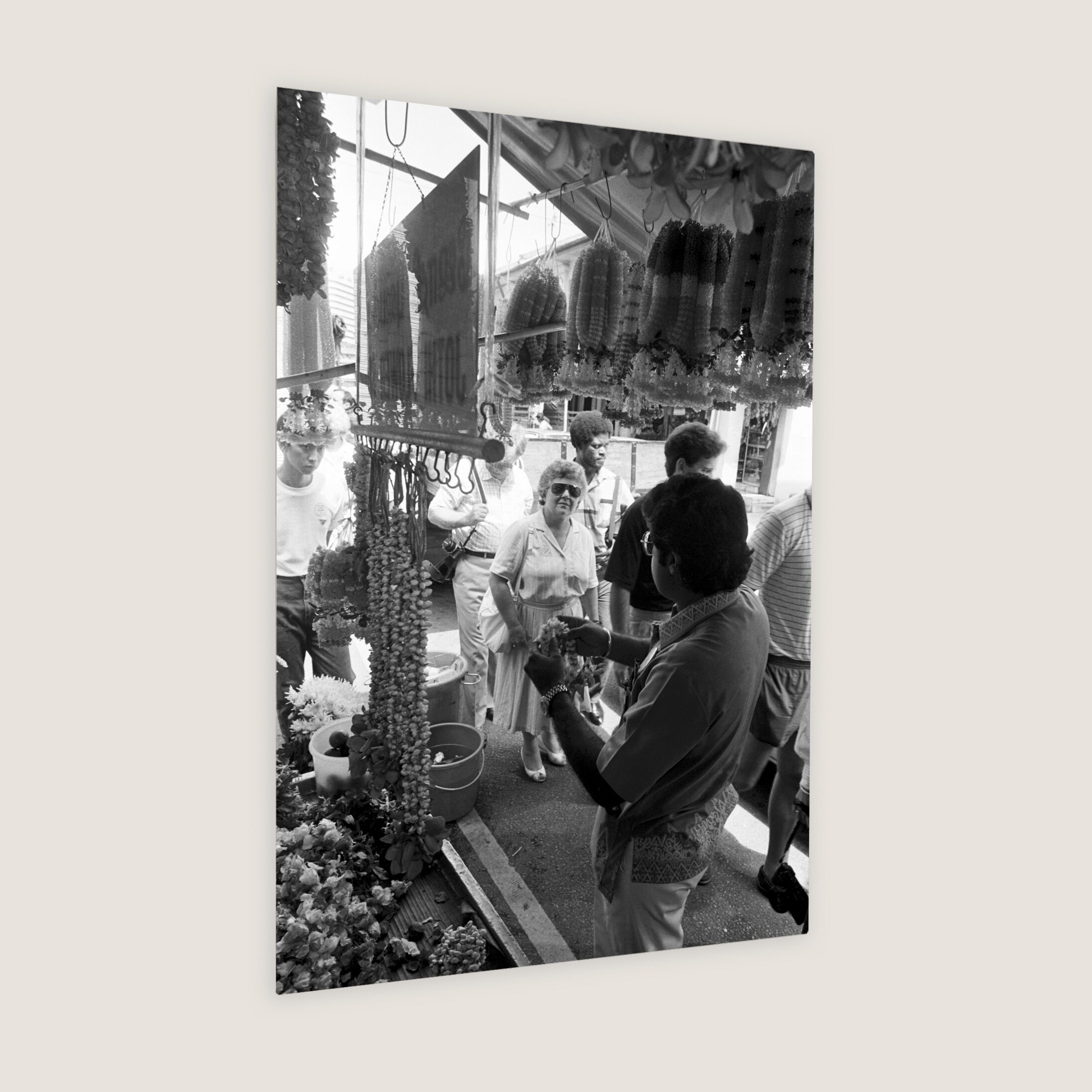 A crowd of people who came from all over Singapore gathered in front of a small shop on Market Street for special Hari Raya gifts. Market Street is considered one of the older streets of Singapore, home to many Indians and Hokkiens.