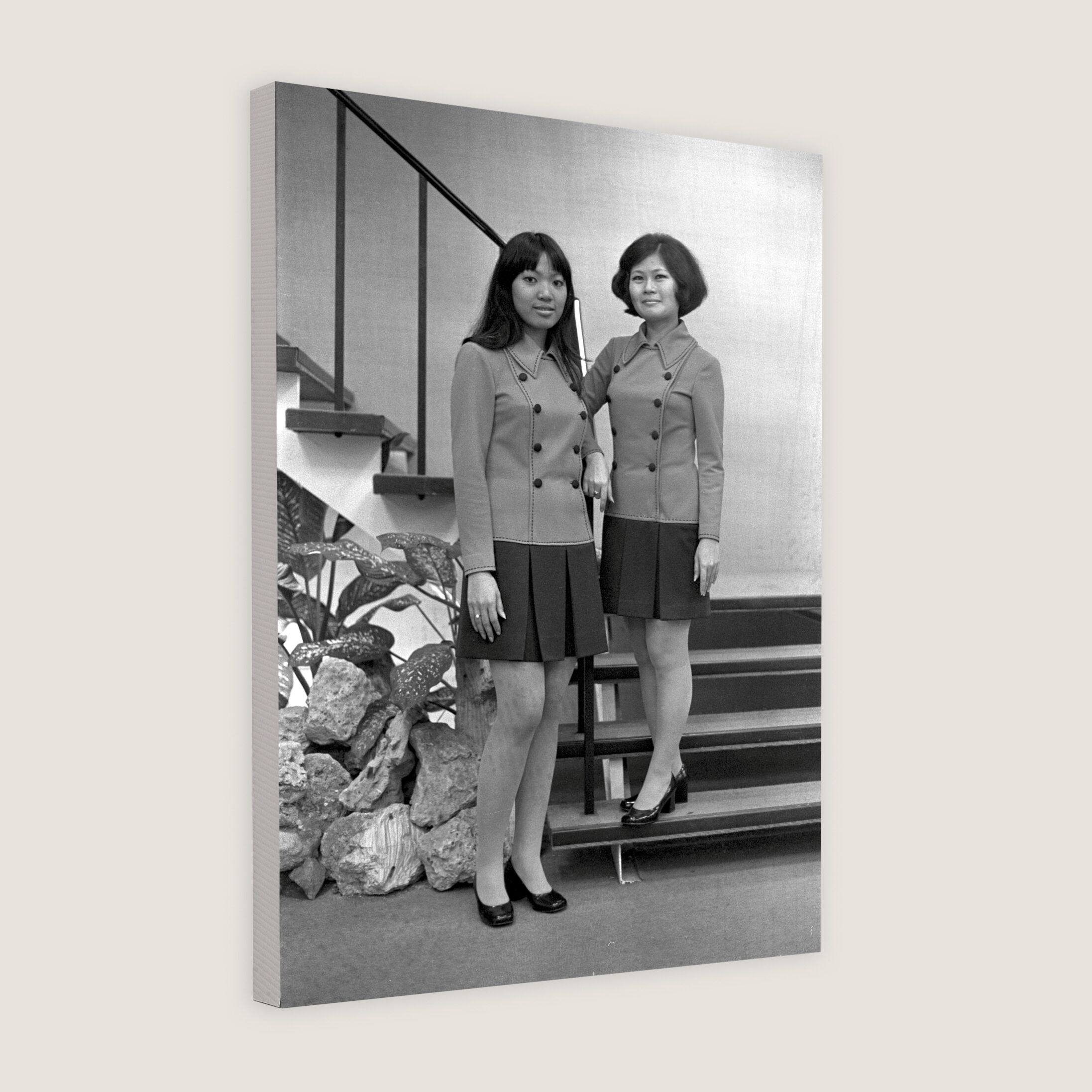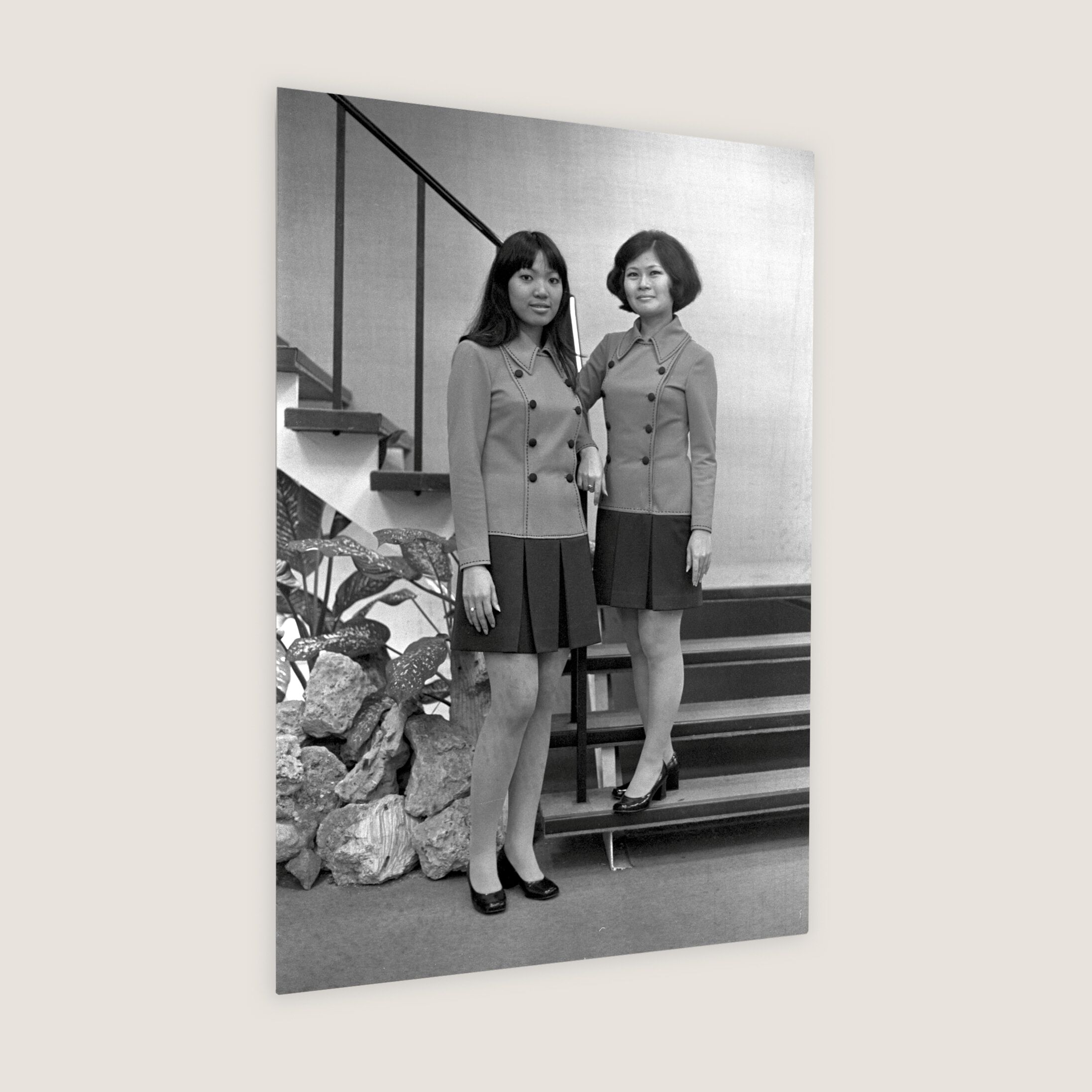 New uniforms and new faces adorn the reception counter of the Tourist Promotion Board offices at Tudor Court in 1972. It was customary to change uniforms of the receptionists every year at the board.