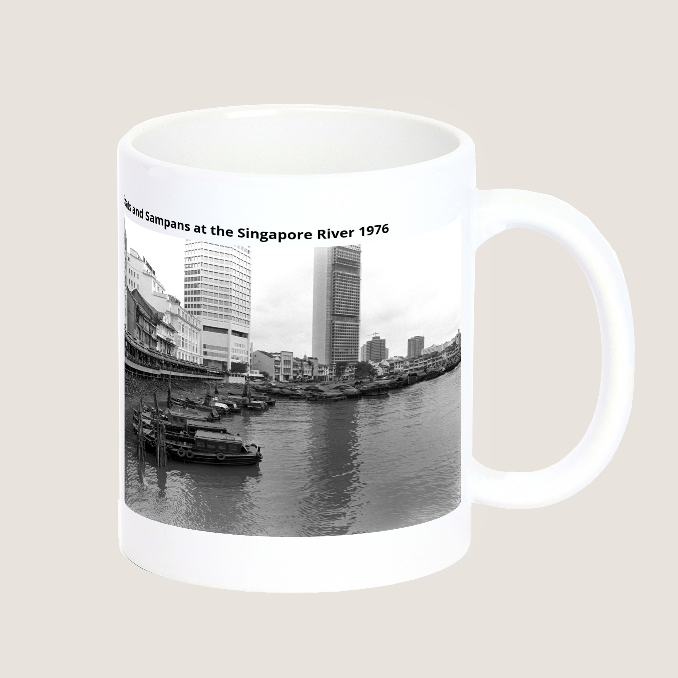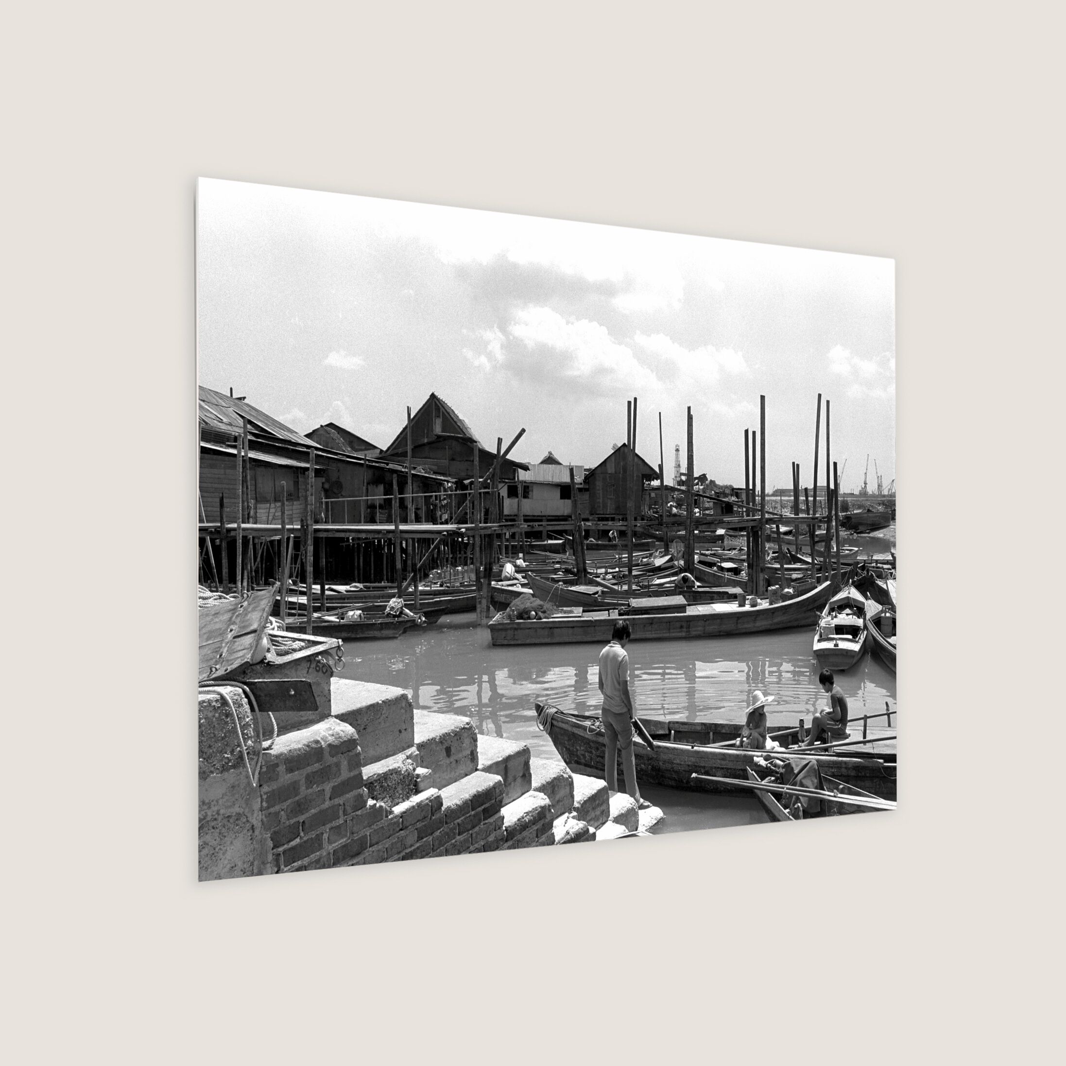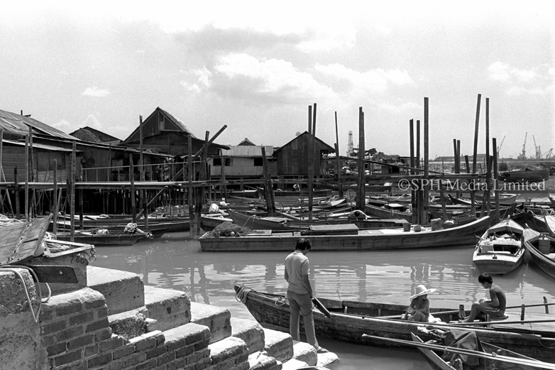 Boats and sampans showcasing the Singapore River's role as a bustling hub for commerce and trade. However, this economic activity came at a cost, as the river suffered from severe pollution. This photo was taken on the cusp of a major clean-up effort, which would take place from 1977 to 1987 and transform the river into the thriving waterway we know today.