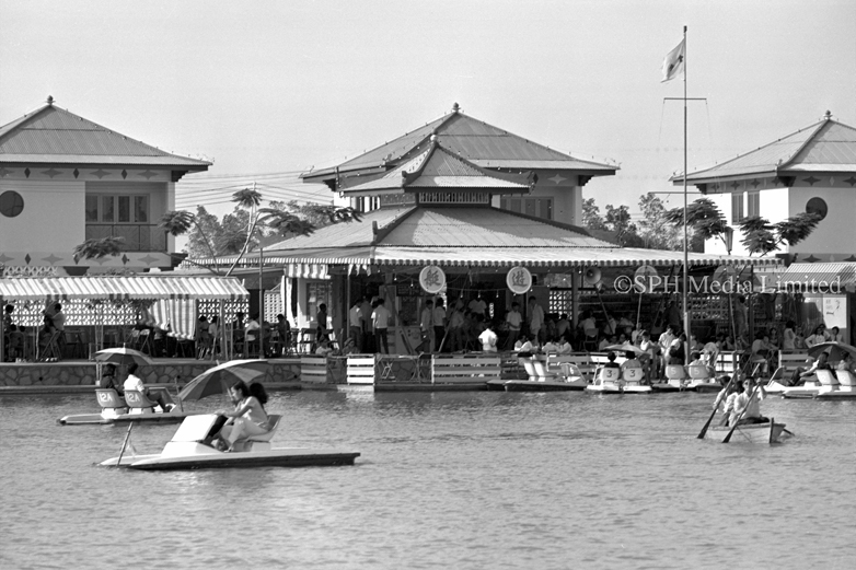 Visitors enjoying water activities at the Golden Palace Holiday Resort, off Tampines Road, on 29 March 1971. The boat rides used to cost $2, while the sampans cost $1. For context, a bowl of fishball noodles used to cost between 30-50 cents in the early 70s. The resort closed at the end of 1971 and it was bought over by the government in 1973.