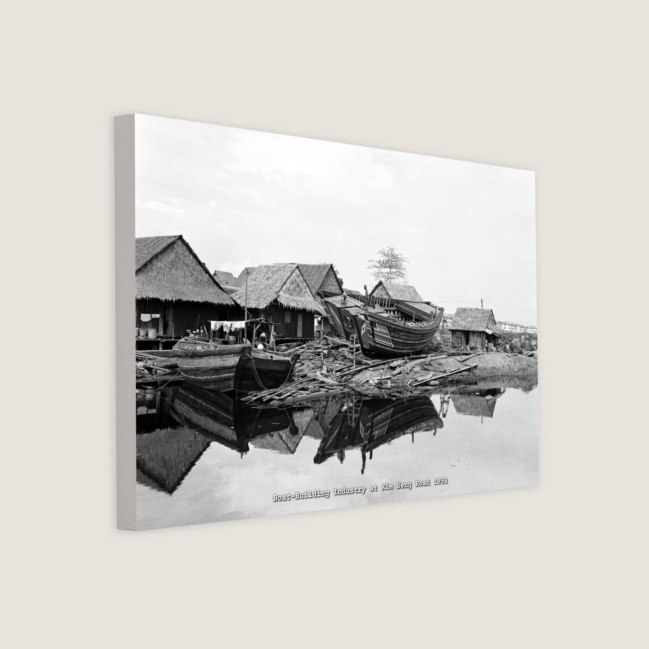 The boat-building industry could be found on Kim Seng Road near the Singapore River. The Singapore River extended from its mouth to the current Kim Seng Bridge.
