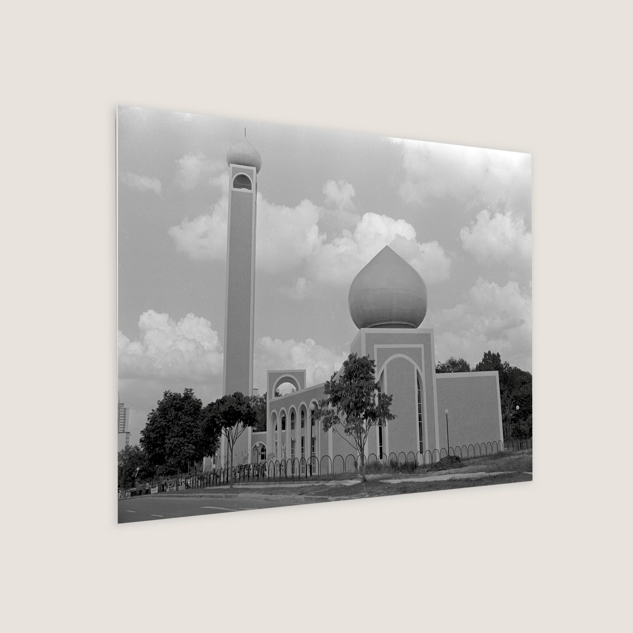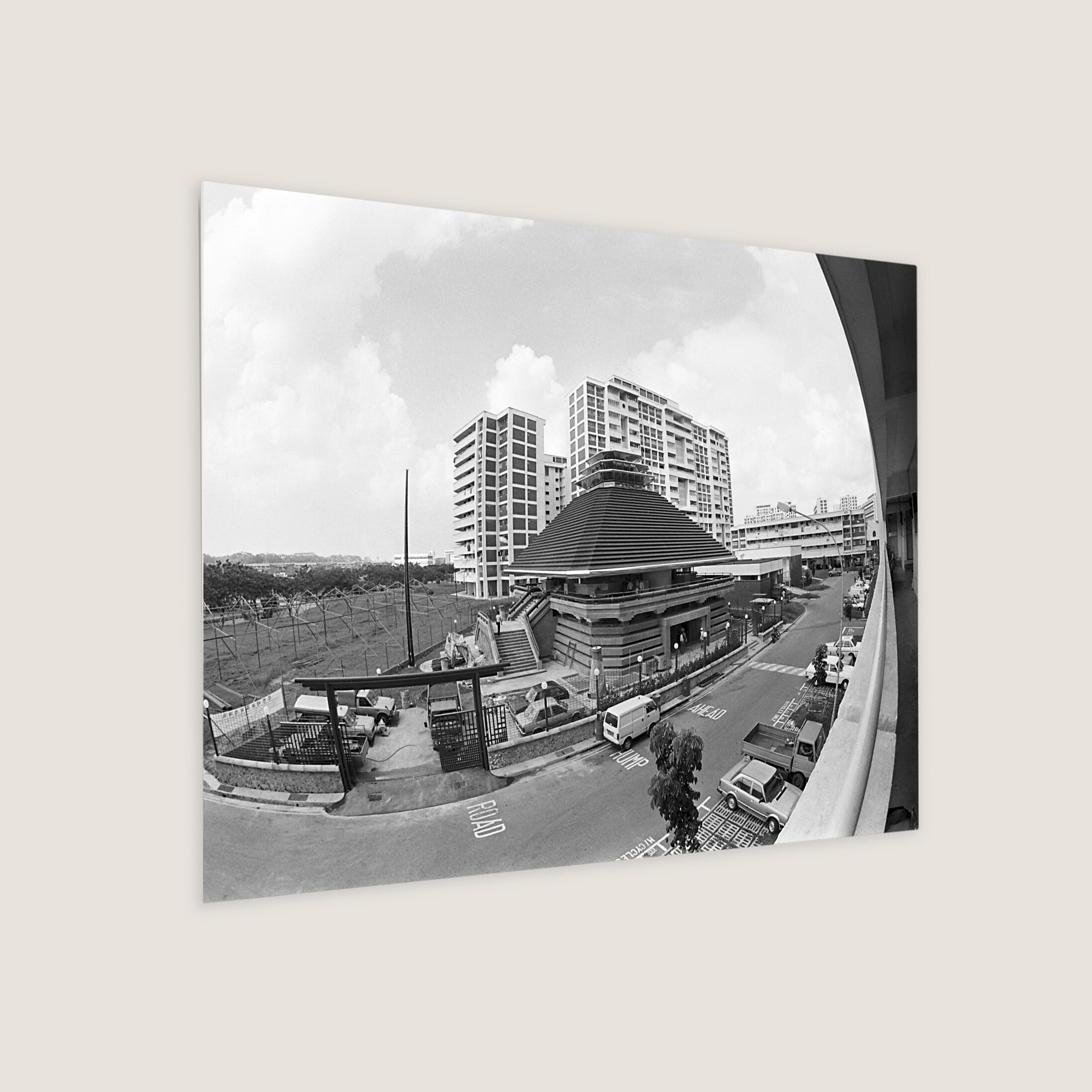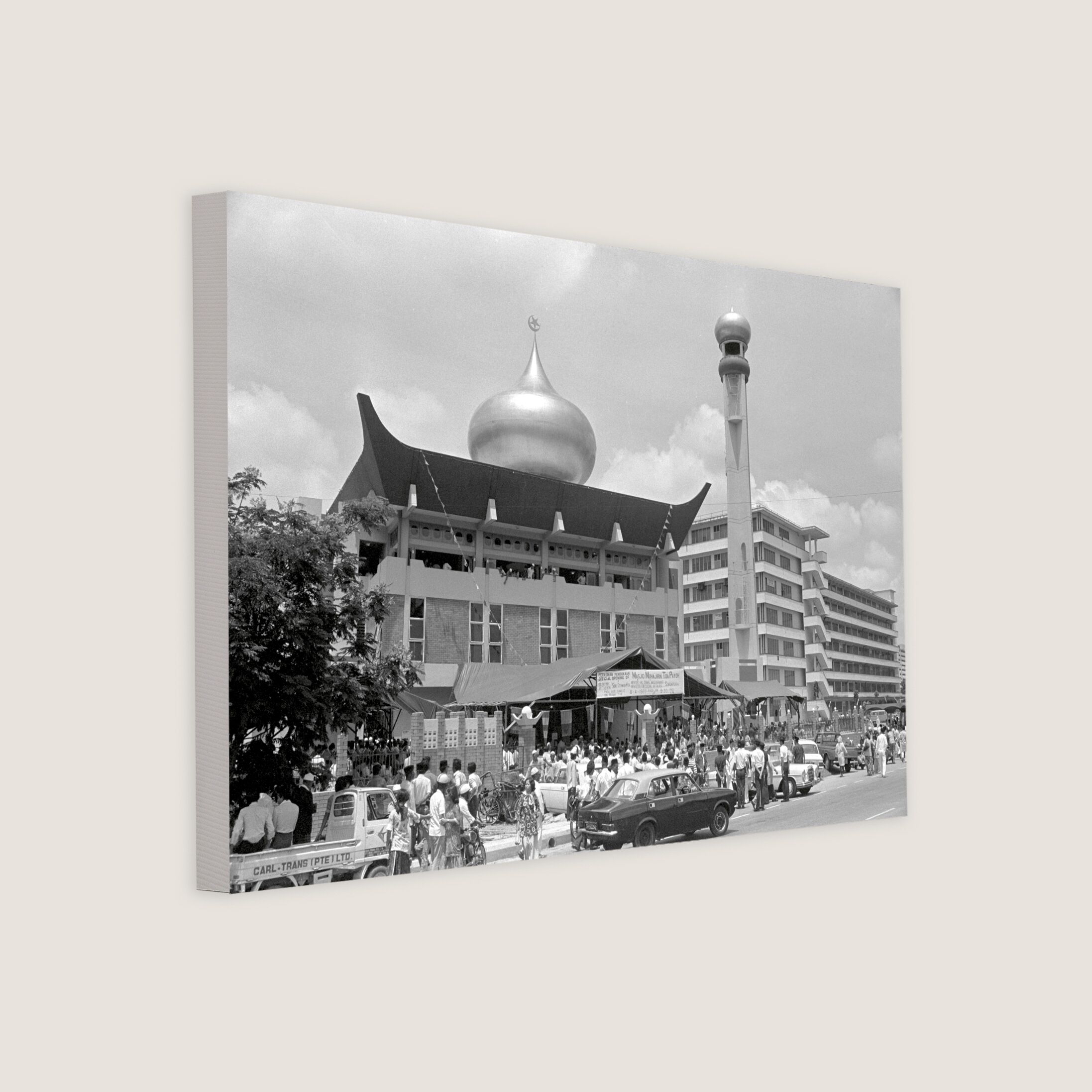 Featuring a Muslim man walking around the Al-Ansar Mosque, located at the junction of Chai Chee Street and Bedok North Avenue 1. Muslim community leaders wanted a mosque in the estate, and a proposal was put forth in 1974. By 1977, Al-Ansar Mosque started construction under phase one of the Mosque Building Fund (MBF) programme. Apart from the main prayer hall, it also has a conference room, Quran reading room, a library, a woman's gallery and living quarters.