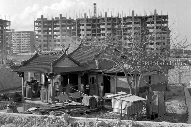 The Toa Payoh satellite HDB flats were being built in the background of the Lian Shan Shuang Lin Monastery in 1968. The temple was constructed in 1909, and today it still stands at the same location in Toa Payoh, right by the Pan Island Expressway.
