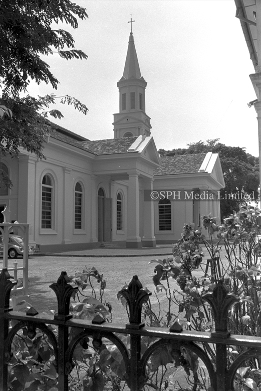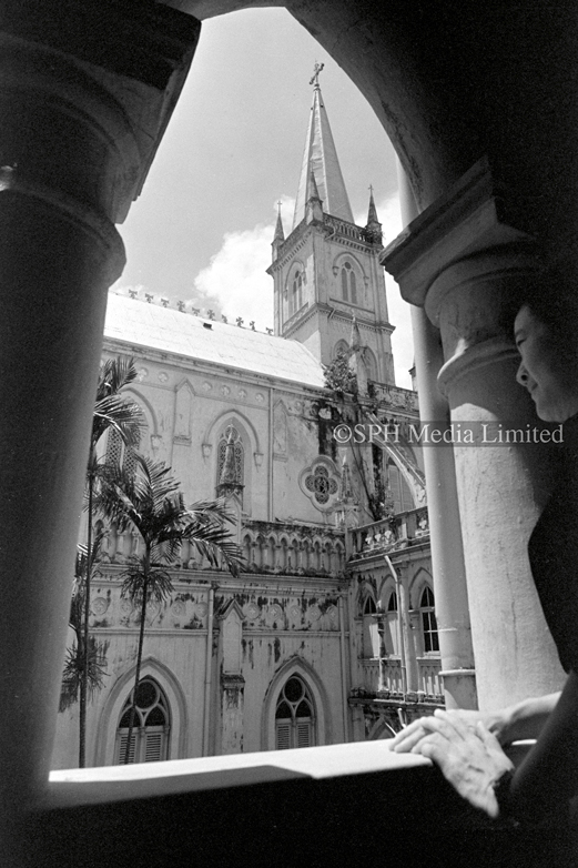 The Cathedral of Good Shepherd at Queen Street, 15 March 1979. It is the oldest Catholic church in Singapore, built in 1847. It is located in the Museum Planning Area within the Civic District.