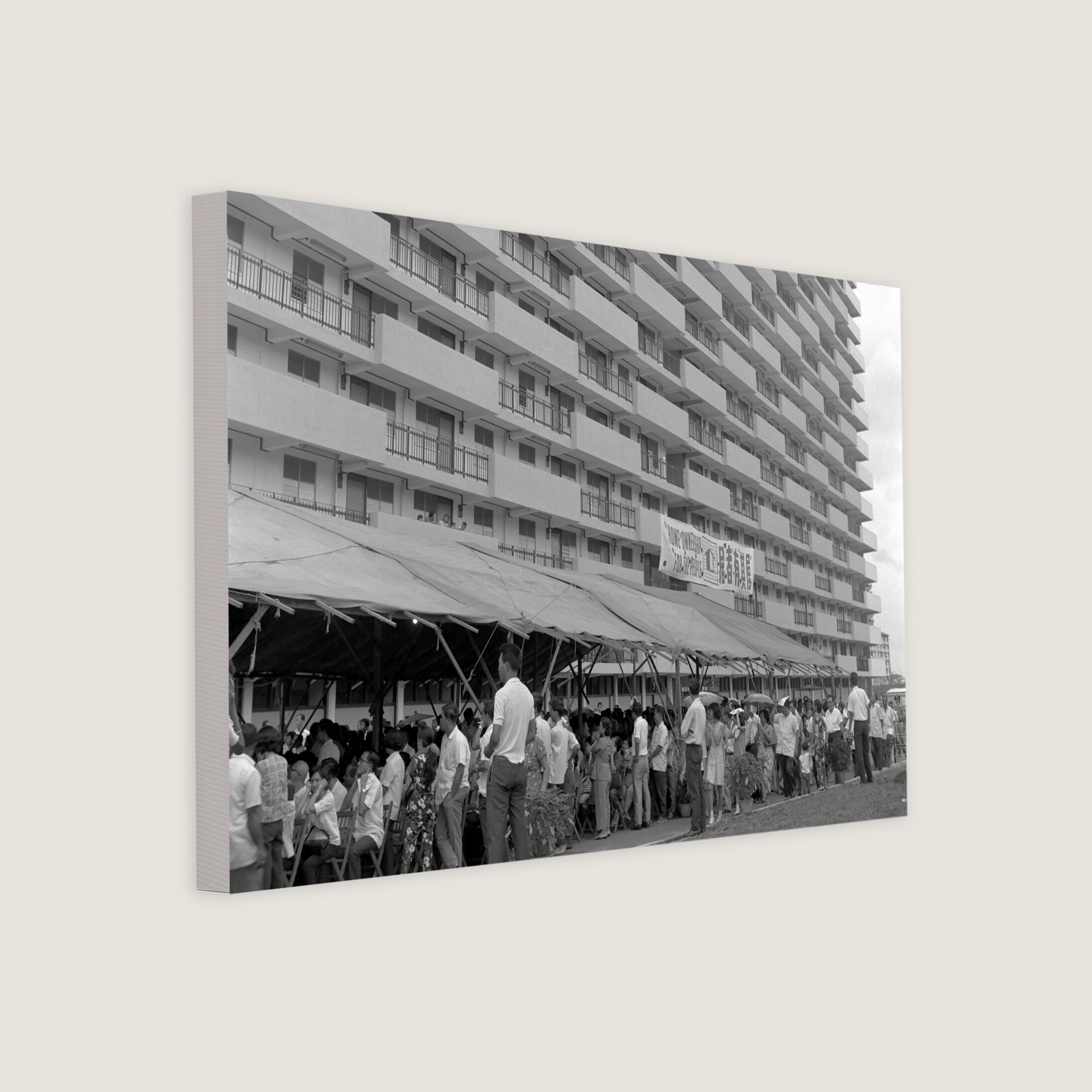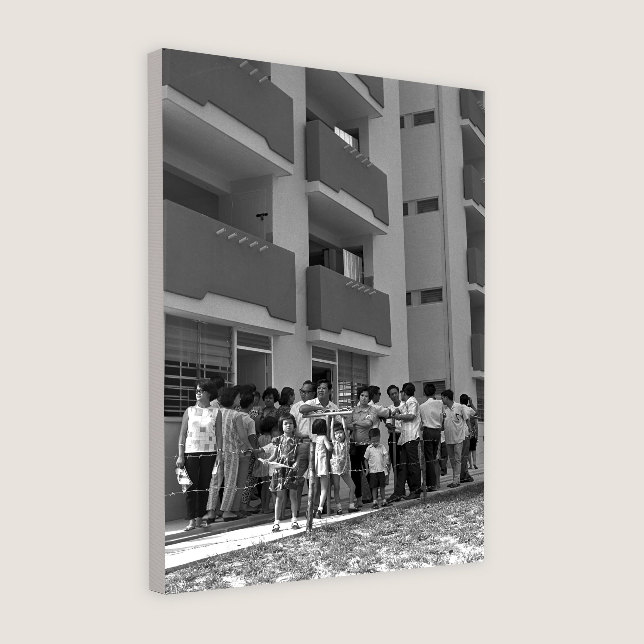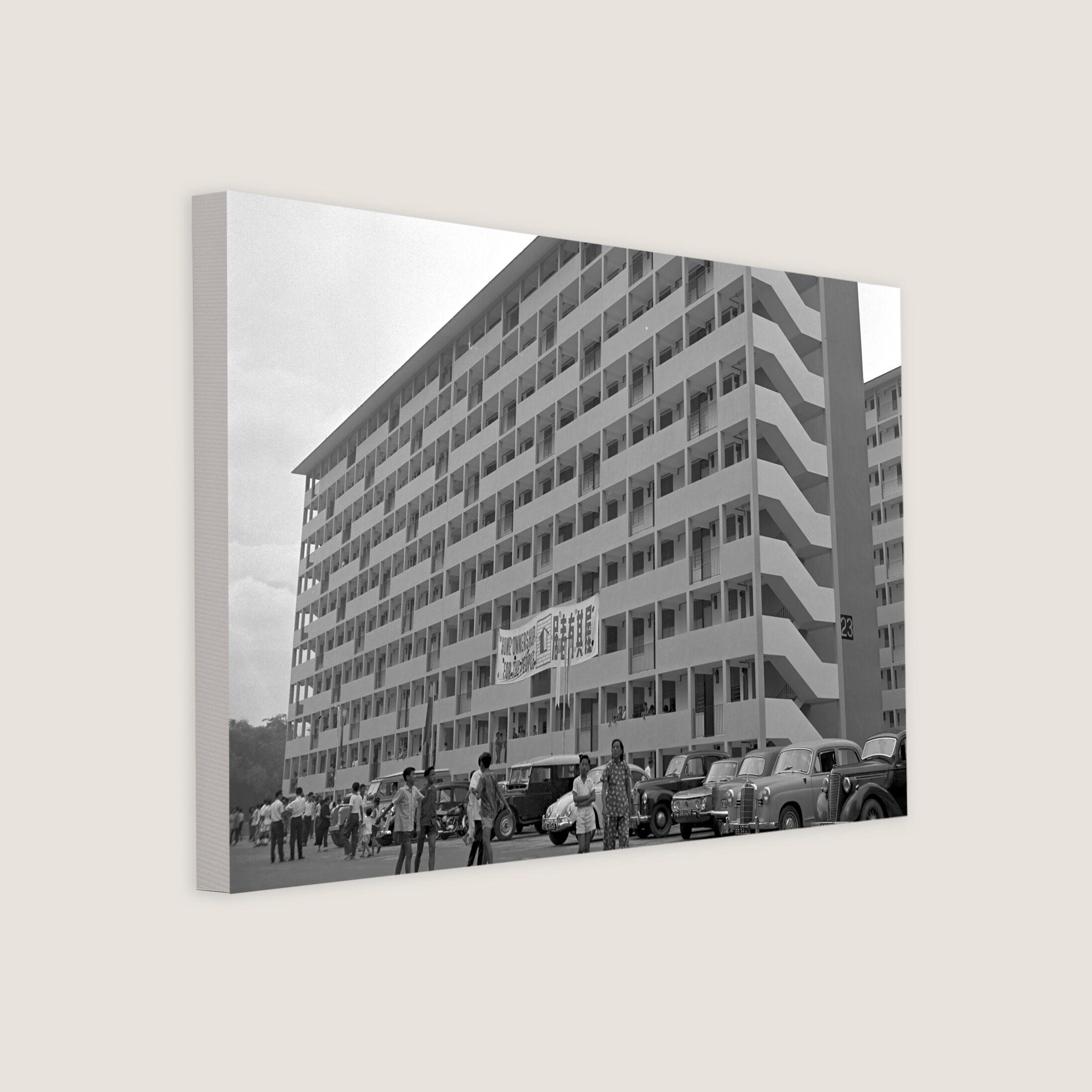 Crowds at the 19th-storey Y flat ready for balloting at Toa Payoh estate in the 1960s. It was a highlight of Singapore's architecture, with an innovative take. It was known as the 'VIP block' due to the number of foreign and local dignitaries visiting this location. Famous guests include former Australian Prime Minister John Gorton, Queen Elizabeth II, Princess Anne and Prince Phillip of the United Kingdom, and former Sri Lankan Prime Minister Bandaranaike Sirimavo.