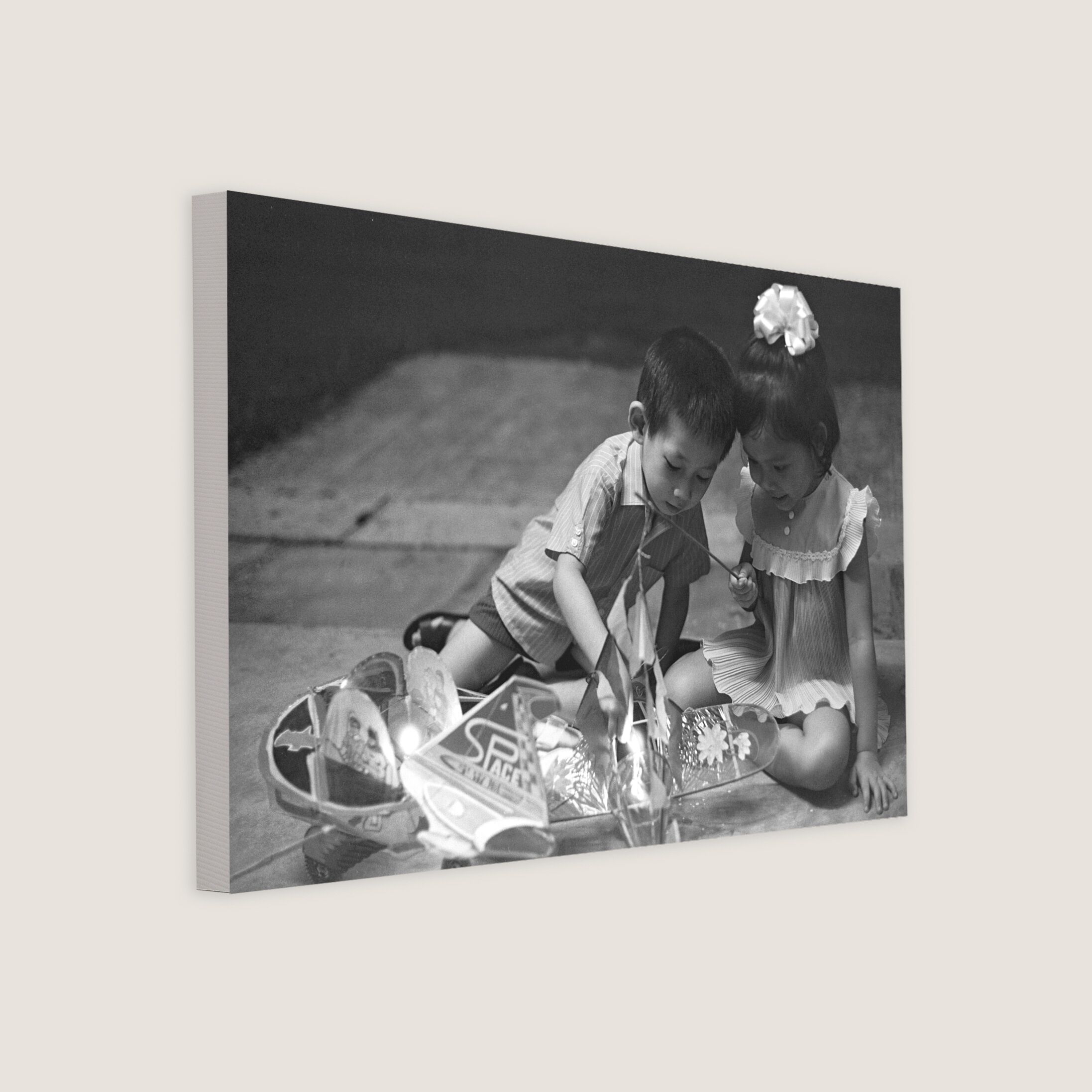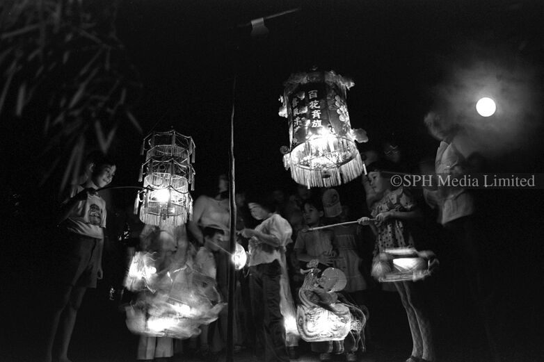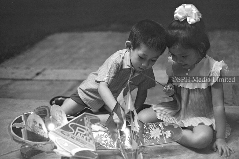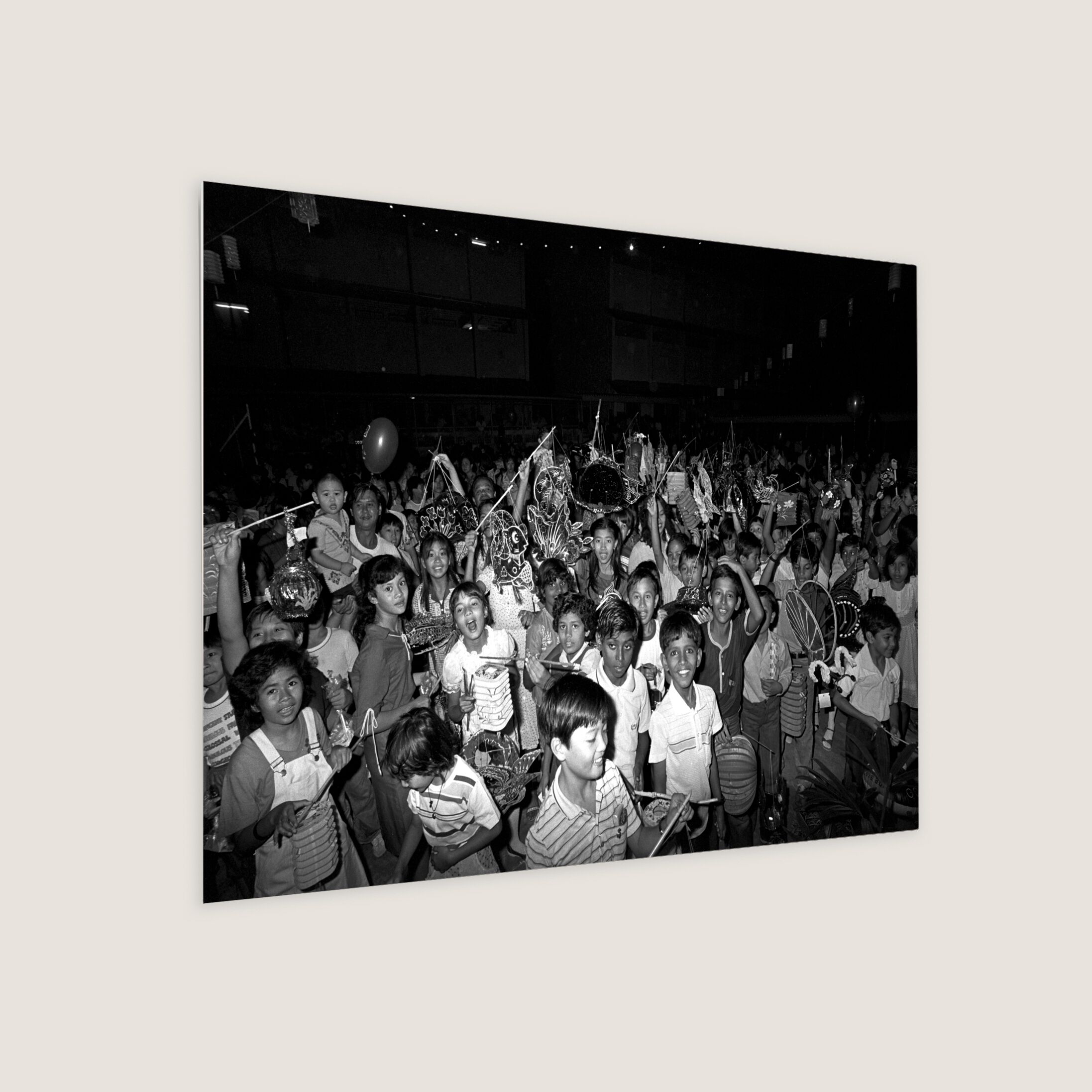 Heavy rains failed to dampen the Hari Raya spirit of the children at Kampong Sungei Mandai Kechil in Woodlands. Dressed in their holiday best, they make their way through the muddy waters. The Kampong was eventually taken down to make way for the Customs Department extension to the Woodlands Checkpoint.