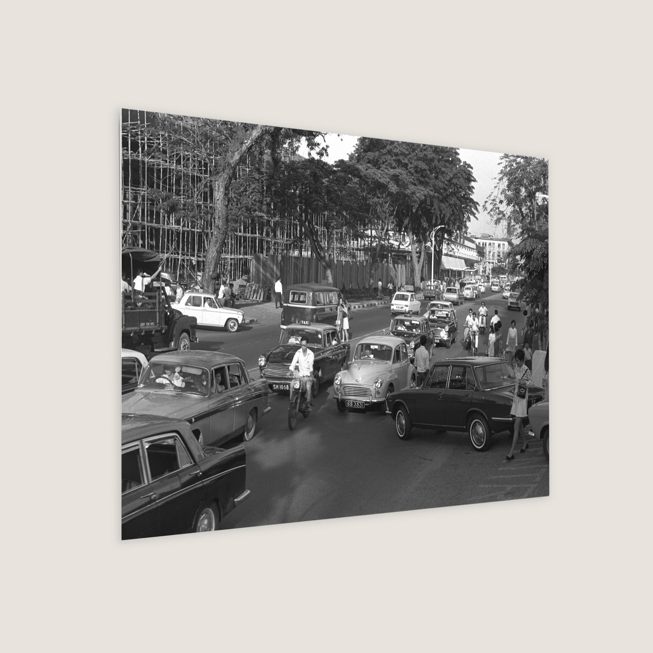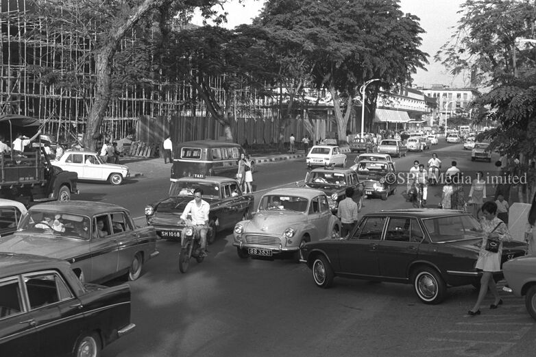 A junction in front of the Police Court on South Bridge Road in May 1952. Although a strike by Singapore Traction Company workers was underway, the busy road seemed calm. The photo captures workers gathered in front of the Police Court. By the 1950s, STC was grappling with operational difficulties, including labour strikes and growing competition from illegal taxi services.