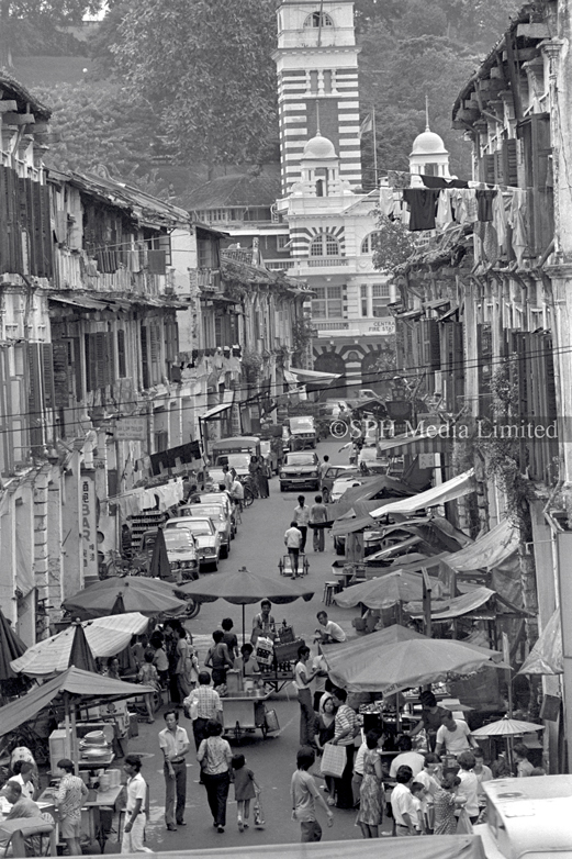 A hawker was preparing food at a stall along a narrow street in Chinatown on July 1983. By the end of September 1983, this vibrant corner of Singapore had vanished. As street hawkers disappeared, the area underwent a transformation with many relocating to newly constructed hawker centres.