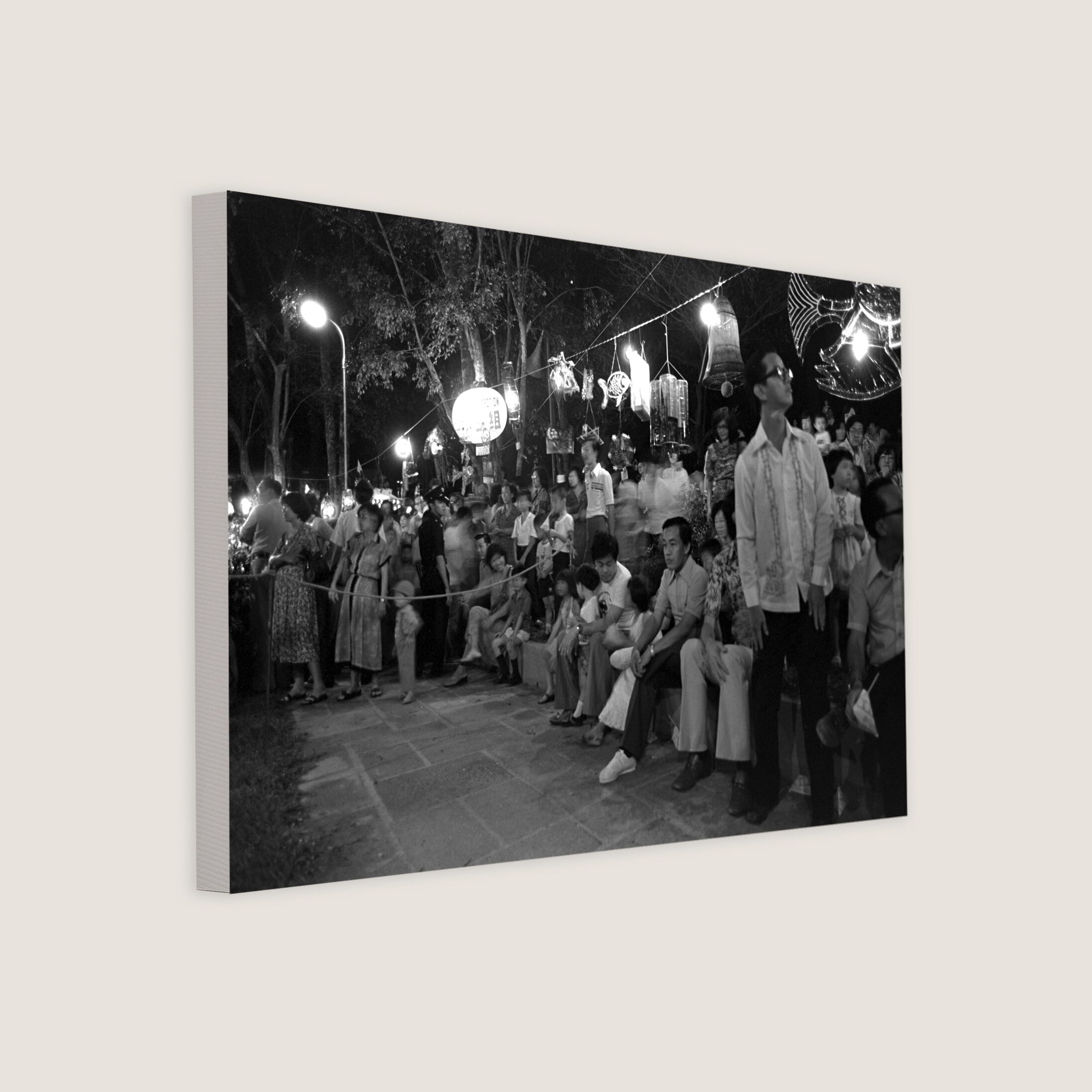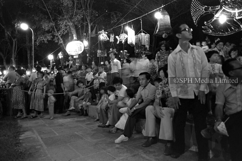 People sitting on ledges of their HDB flat watching the Chingay Parade. In 1972, a bill was passed banning firecrackers. The absence of firecrackers to celebrate the Lunar New Year reduced public enthusiasm for the occasion. As an alternative, a Chingay Parade was initiated.