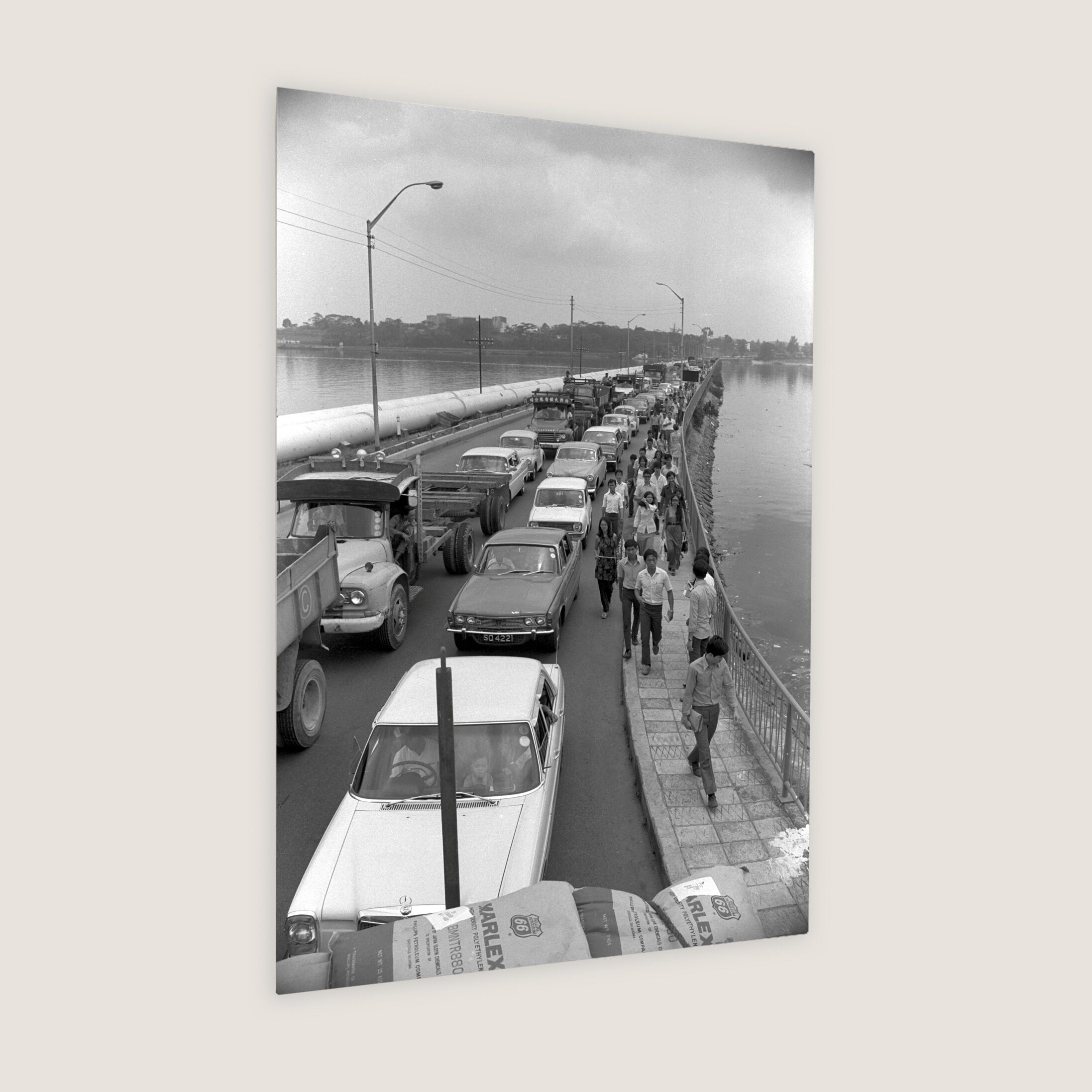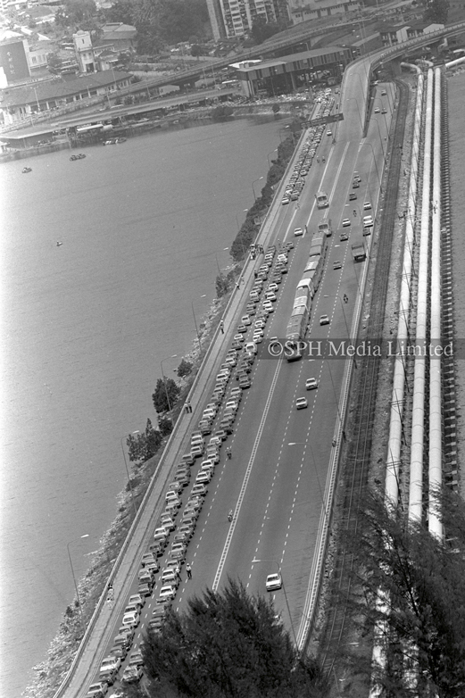 Featuring an aerial view of a long traffic jam along the Causeway at Woodlands in 1981. Since 1924 till now, the Causeway served as an important link for Singaporeans and Malaysians alike to cross the borders for work and family.