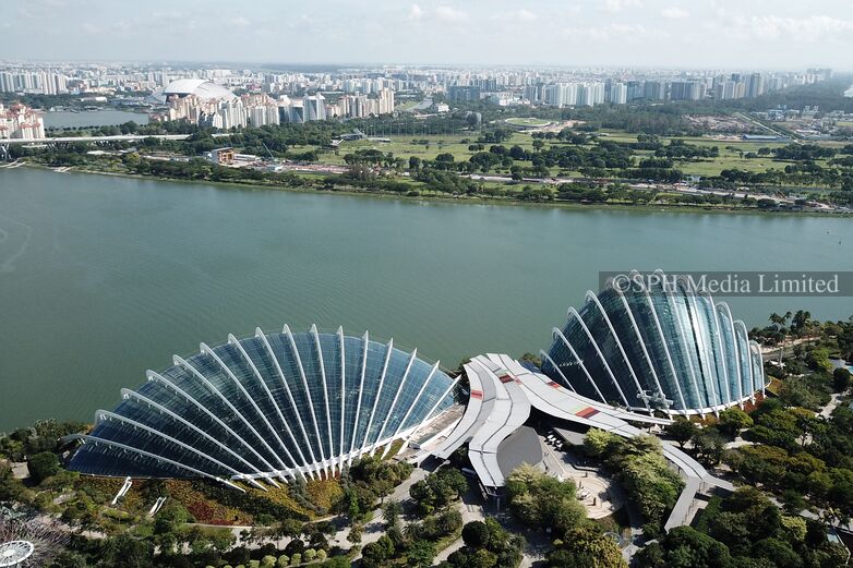The conservatory complex at Gardens by the Bay comprises two cooled conservatories, the Flower Dome and the Cloud Forest, situated along the edge of Marina Reservoir. The Flower Dome is also listed in the Guinness World Records as the largest glass greenhouse.
