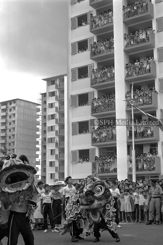 On 1 October 1966, Toa Payoh—Singapore’s first satellite town, developed entirely by the Housing and Development Board, hosted a lively housing ballot. Residents gathered on balconies to witness the event, which featured lion dance performances and a festive atmosphere.