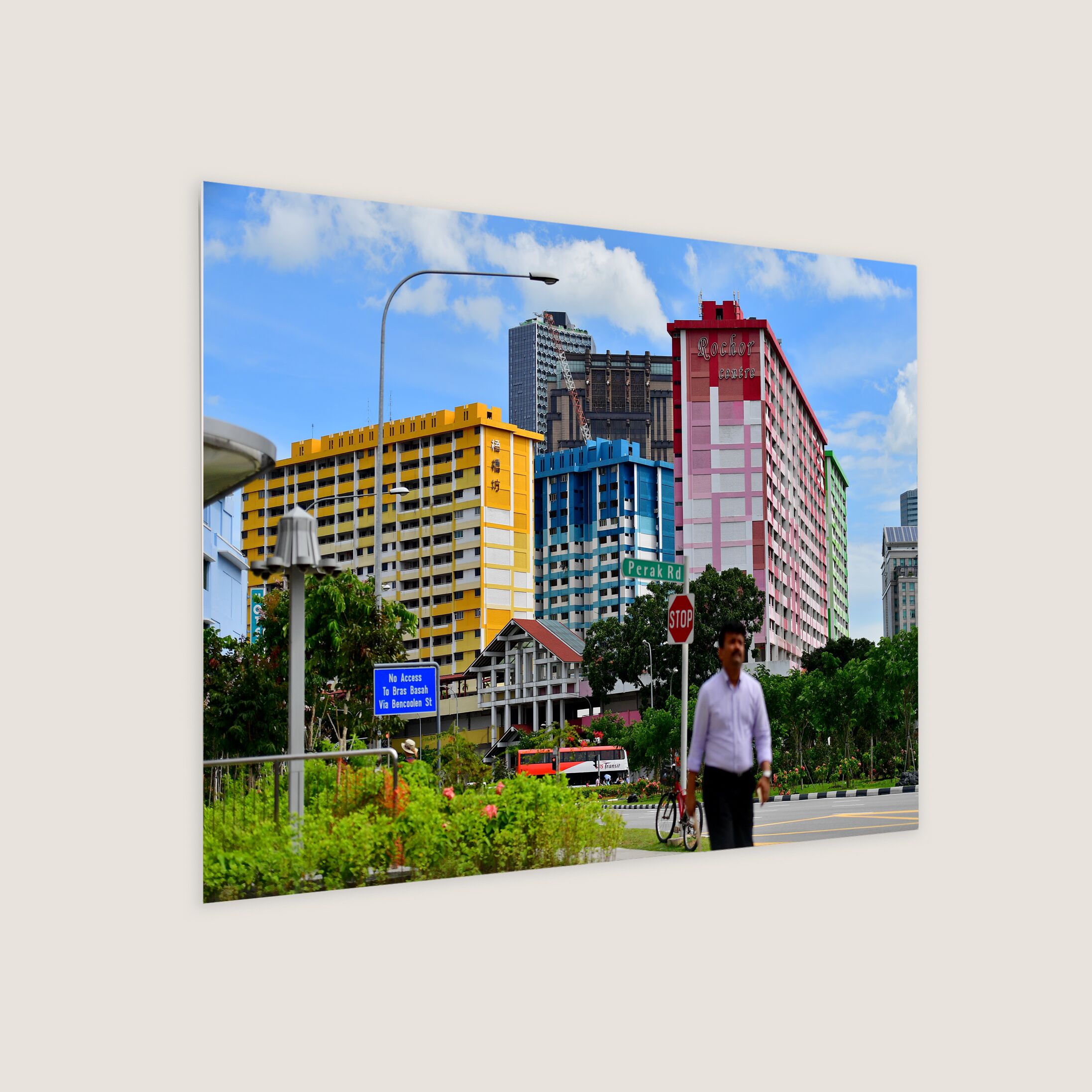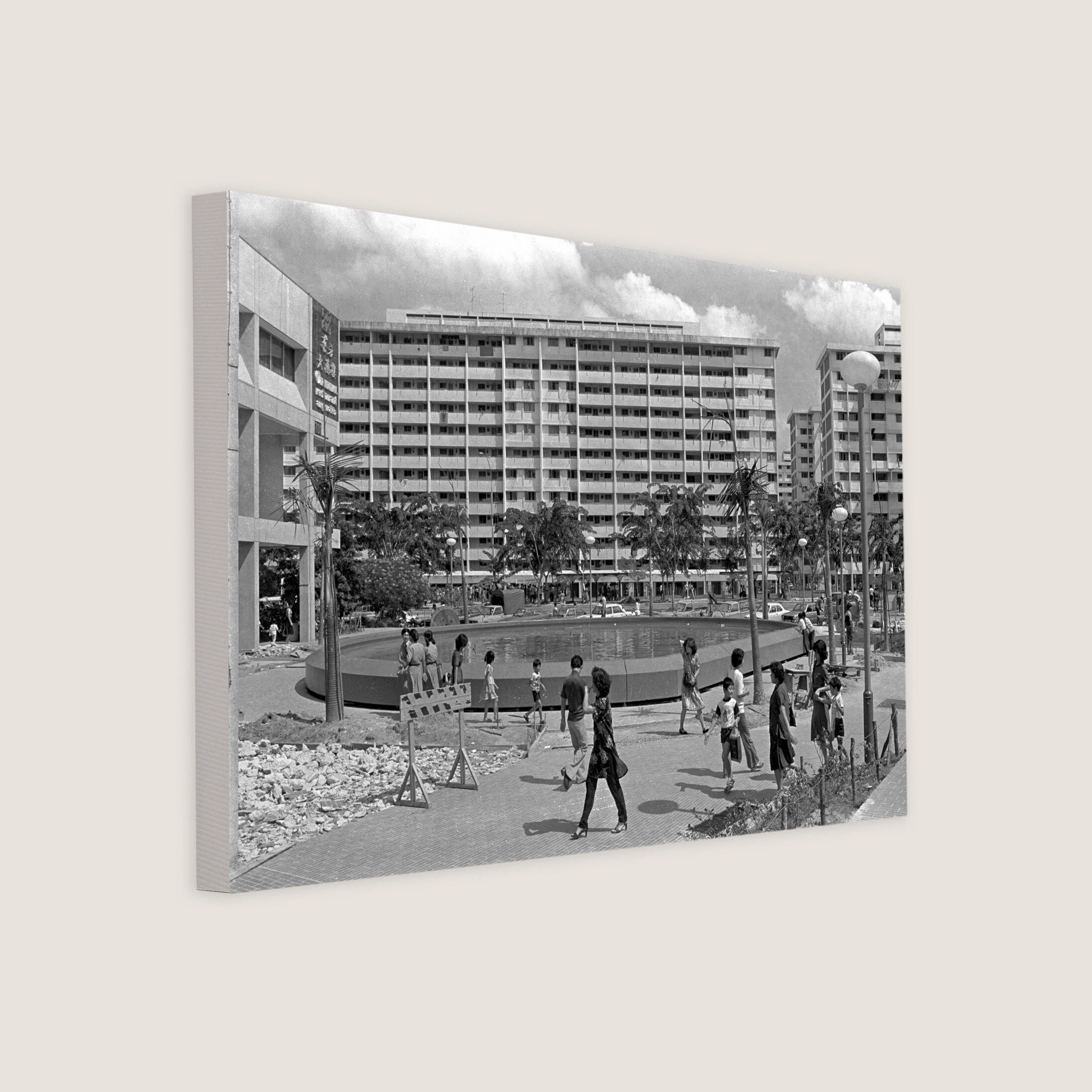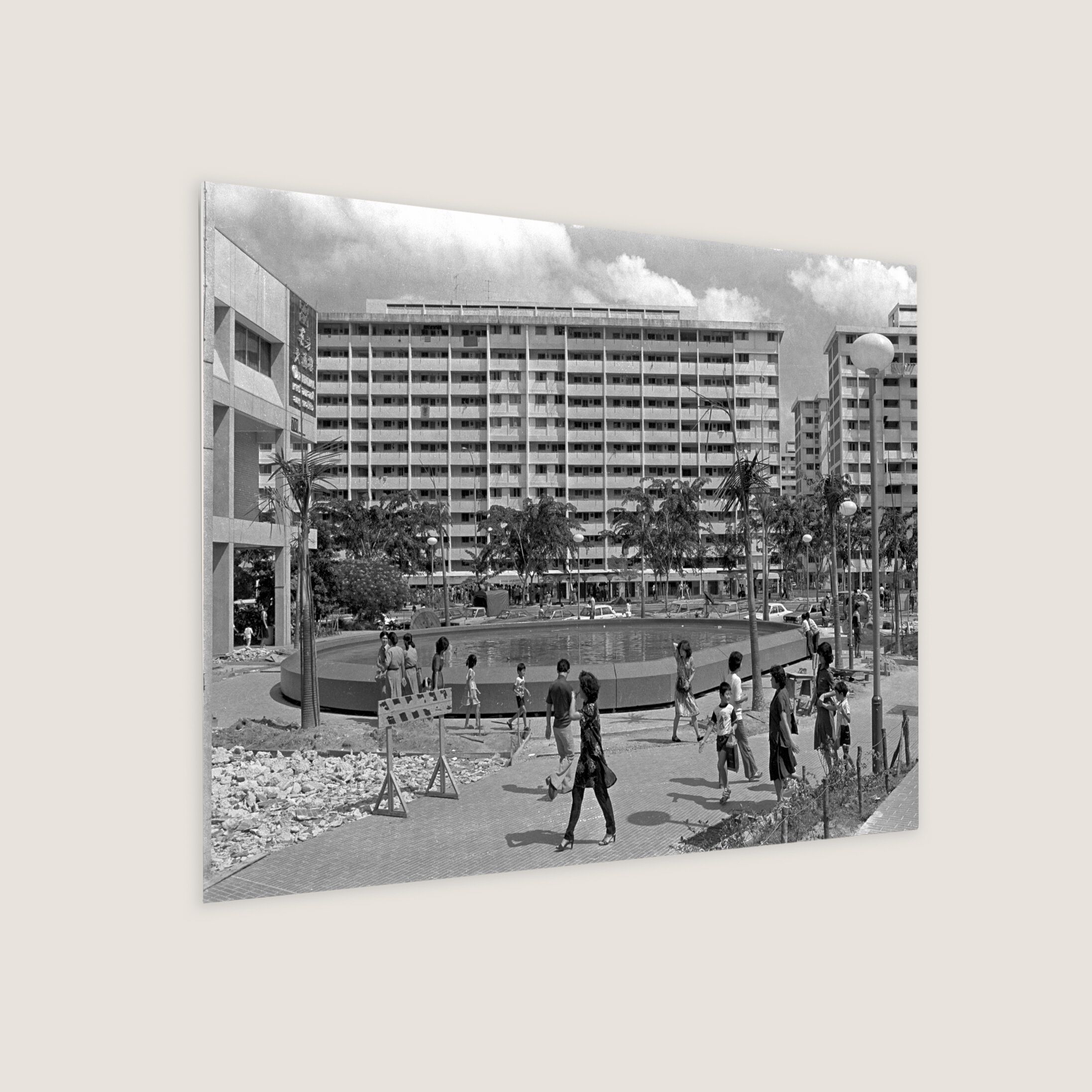 Completed by the Housing and Development Board in 1977, Rochor Centre featured four vividly painted residential blocks and a three-storey podium of shops and offices. With its bold colours and strategic location near Sungei Rochor, Bugis Village, and Sim Lim Square, it became a striking landmark for decades.