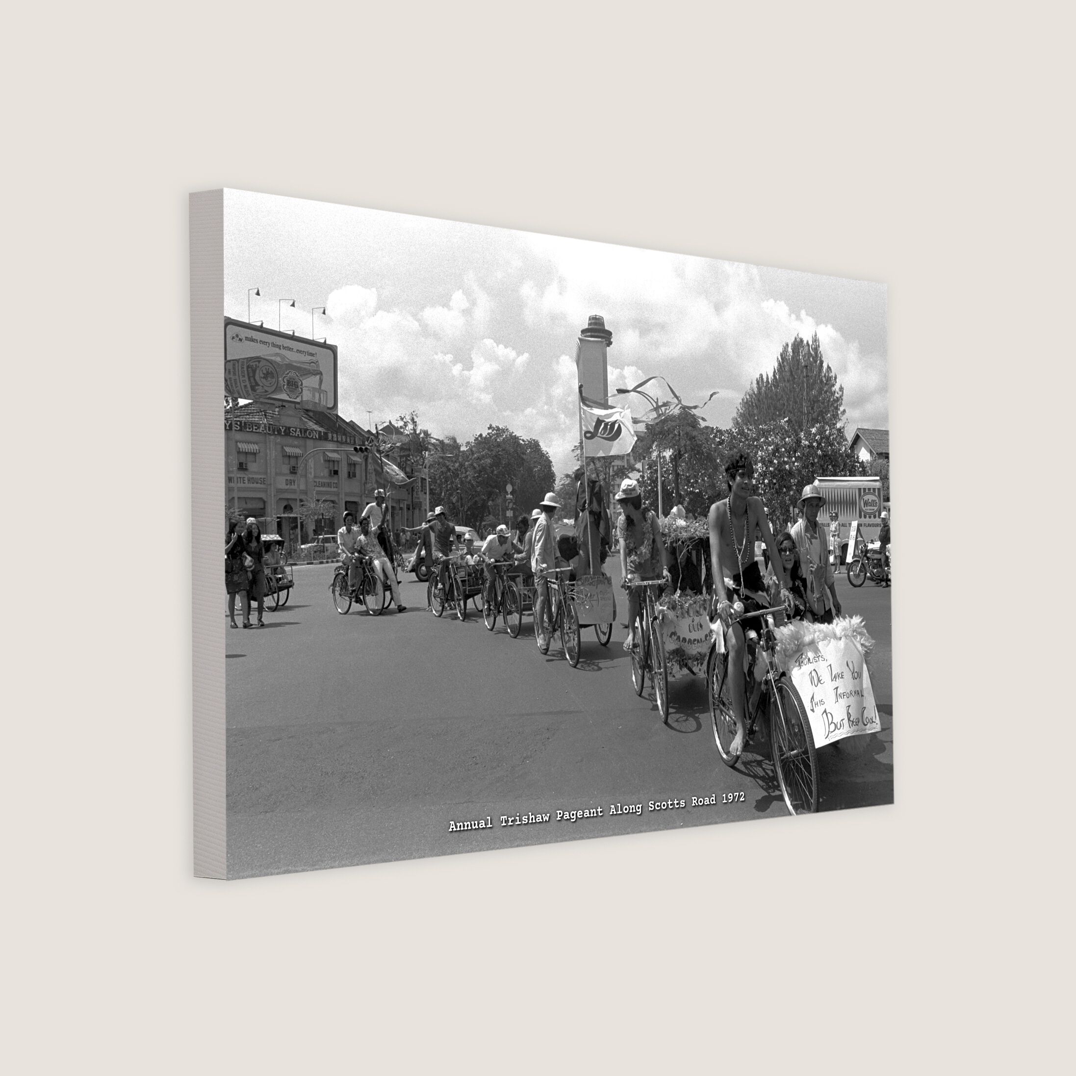 They were not making a living but showcasing their university. Undergraduates and senior students from the University of Singapore held their second annual trishaw pageant along Scotts Road and Orchard Road on 15 July 1972. The pageant, organised by the University Students' Union, was part of the orientation for its freshmen.