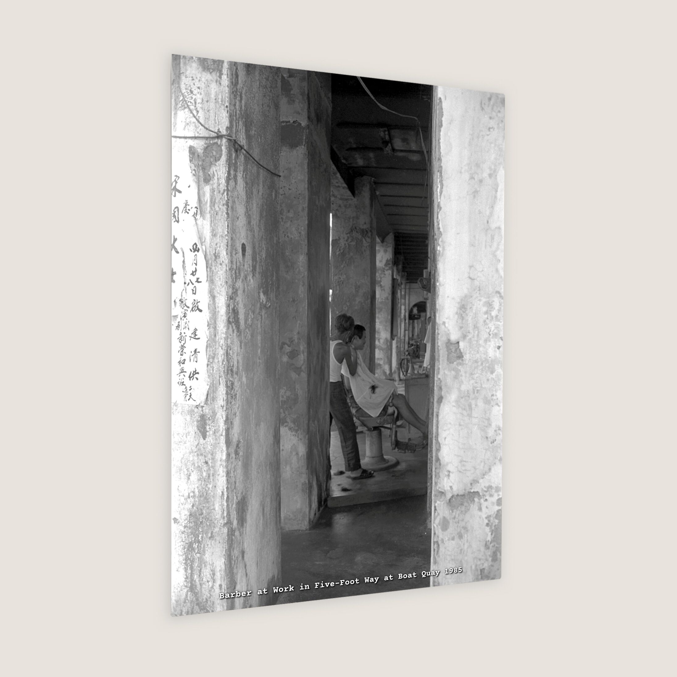 In 1985, as Singapore’s river cleanup neared completion, Boat Quay, once a vibrant maritime hub, became quieter. Amidst this change, a lone barber continued his trade along the five-foot-way, offering affordable haircuts. A concentration of such barbers had once existed along a lane connecting Jalan Sultan and North Bridge Road, known as "Barber’s Row."