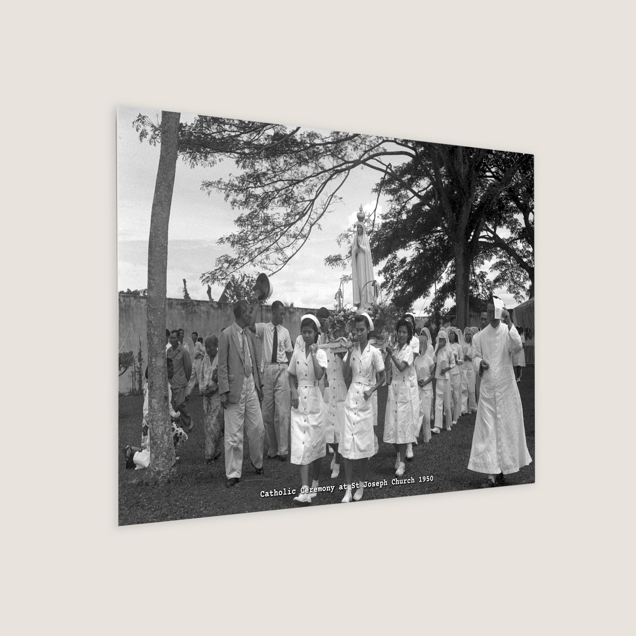 Four girls from the Serangoon Parish carried the statue of Our Lady of Fatima to a decorated altar in the grounds of the Leper Settlement during the Fatima Service.