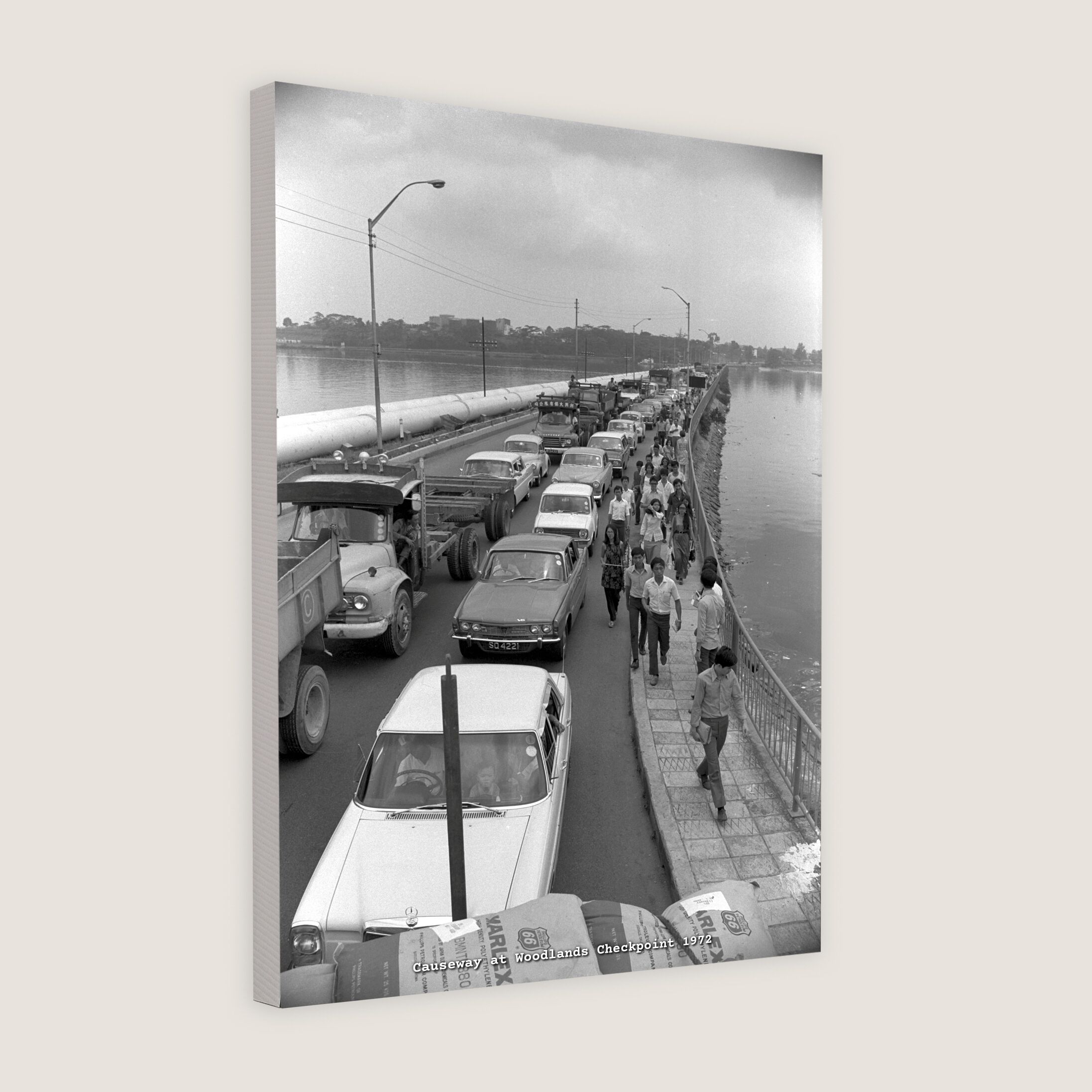 People walked from Woodlands checkpoint to Johore Bahru due to a massive traffic jam attributed to the Easter Holiday in 1972. A common scene of being caught in the customs checkpoint jam still prevails today.