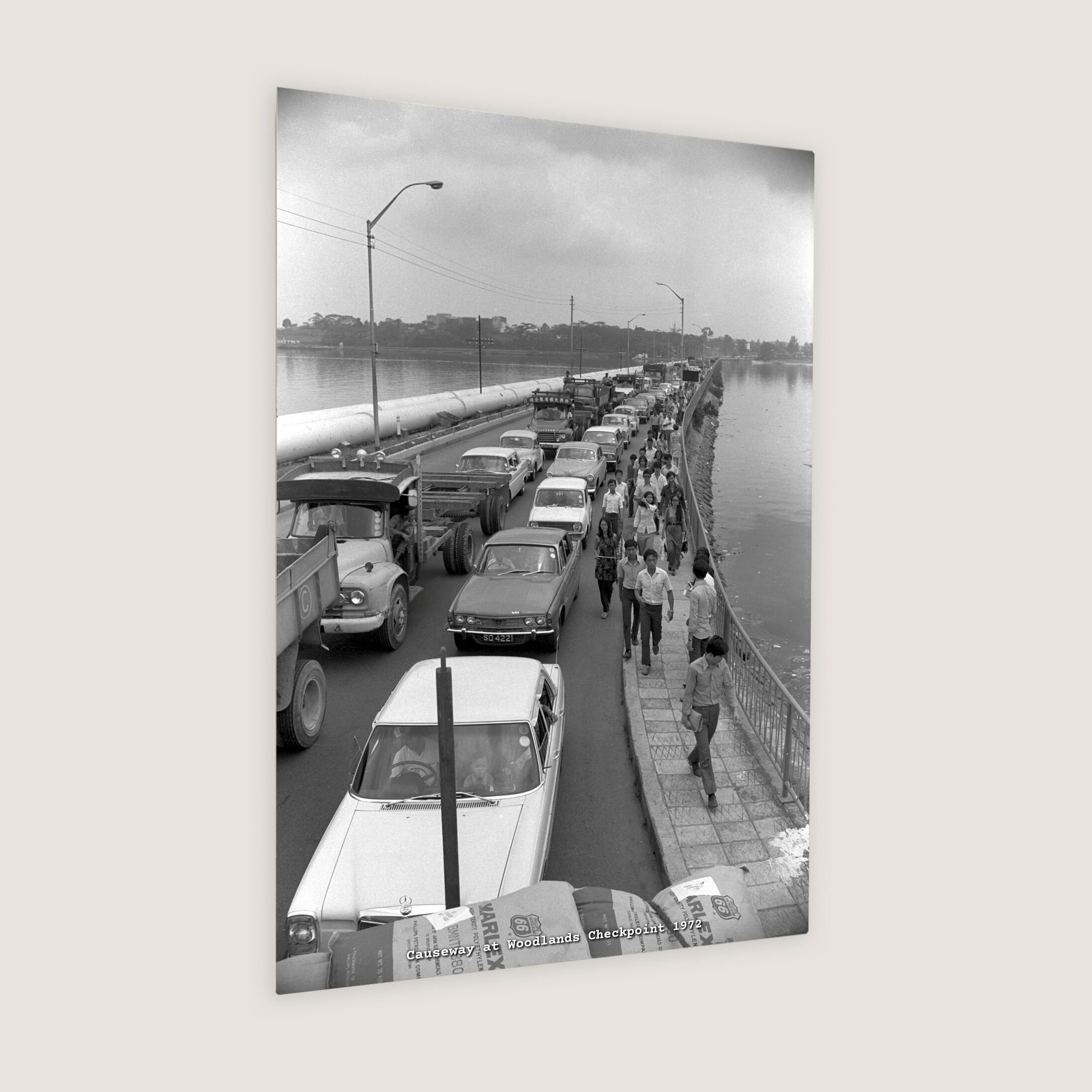 People walked from Woodlands checkpoint to Johore Bahru due to a massive traffic jam attributed to the Easter Holiday in 1972. A common scene of being caught in the customs checkpoint jam still prevails today.
