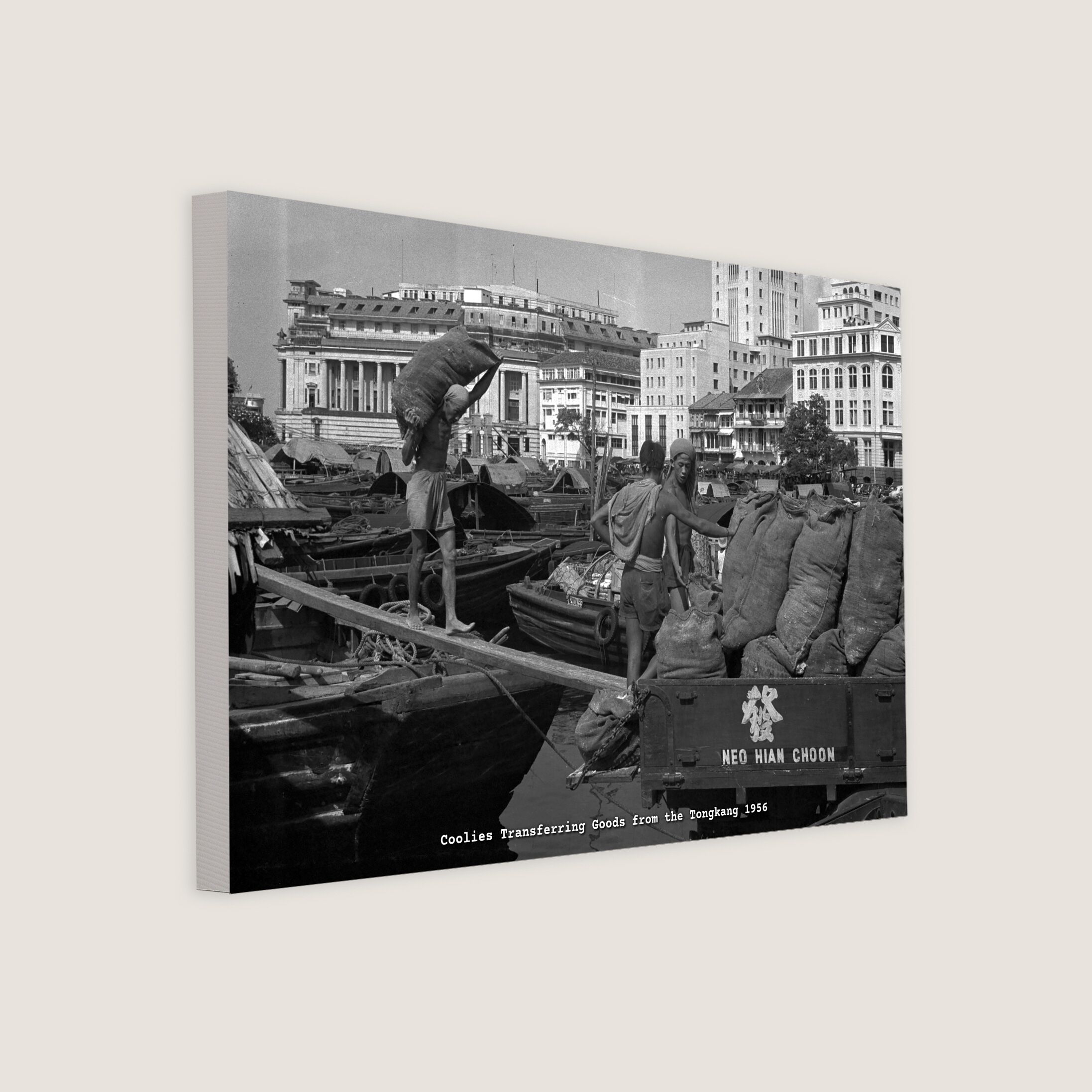 Labourers, also known as coolies, were commonly employed for strenuous manual labour and physically demanding tasks, such as loading and unloading cargo. In early Singapore, it was a frequent sight to see these workers carrying gunny sacks filled with goods near the Singapore River. The goods were loaded from a tongkang (a bumboat) onto a lorry that would transport them to warehouses for storage.