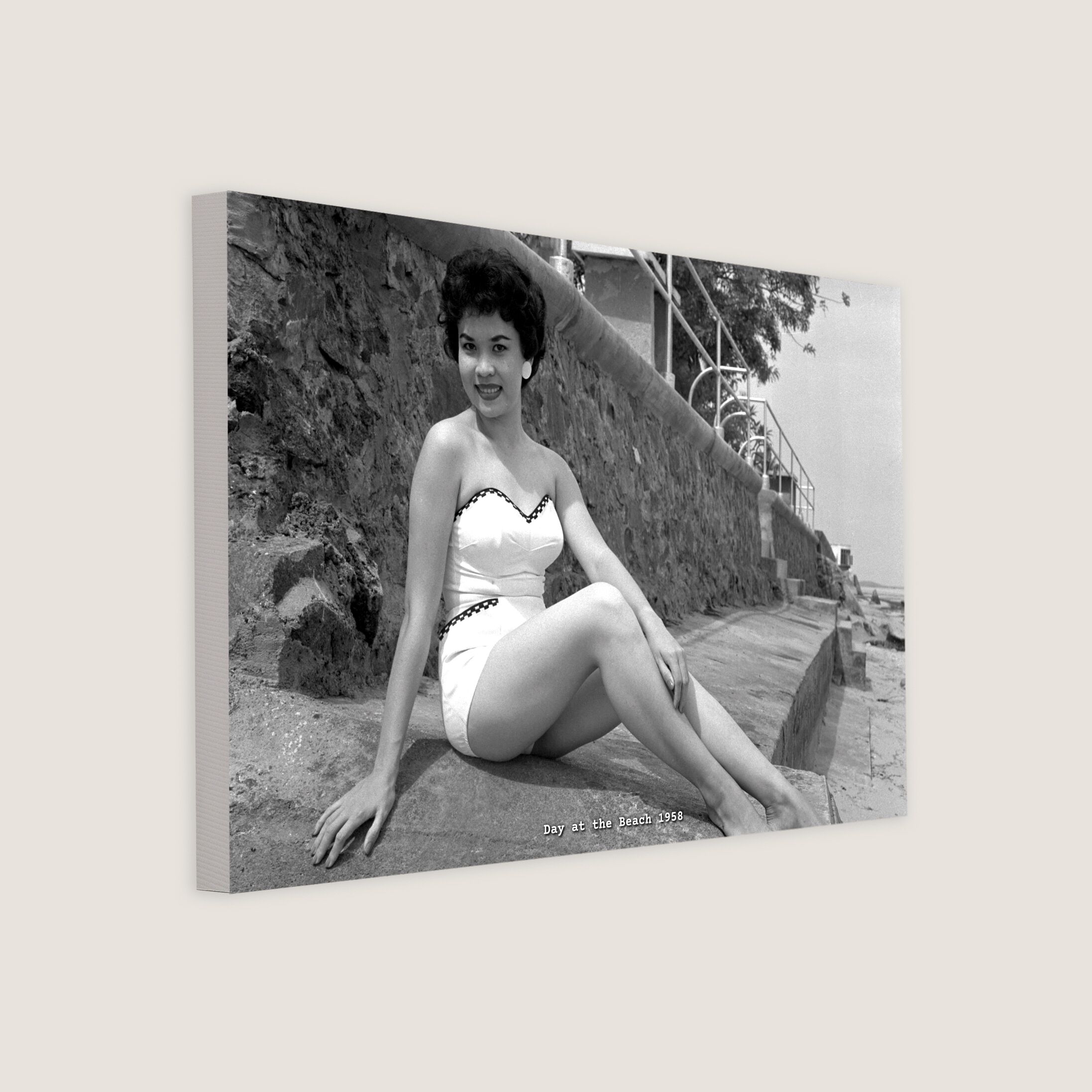 Model and school teacher Leonie Koenitz was having a fun day at Changi Beach in a retro-styled swimsuit.
