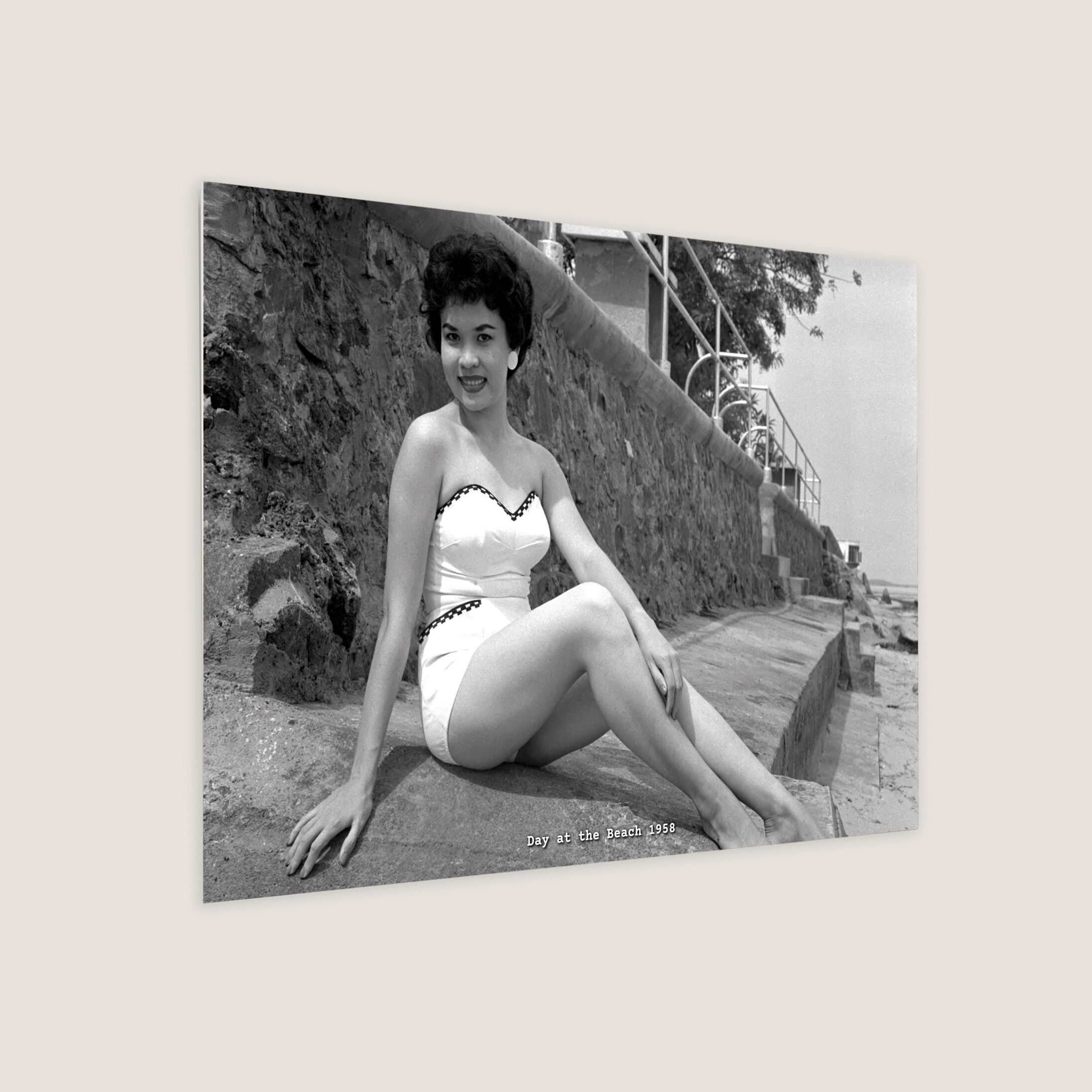 Model and school teacher Leonie Koenitz was having a fun day at Changi Beach in a retro-styled swimsuit.