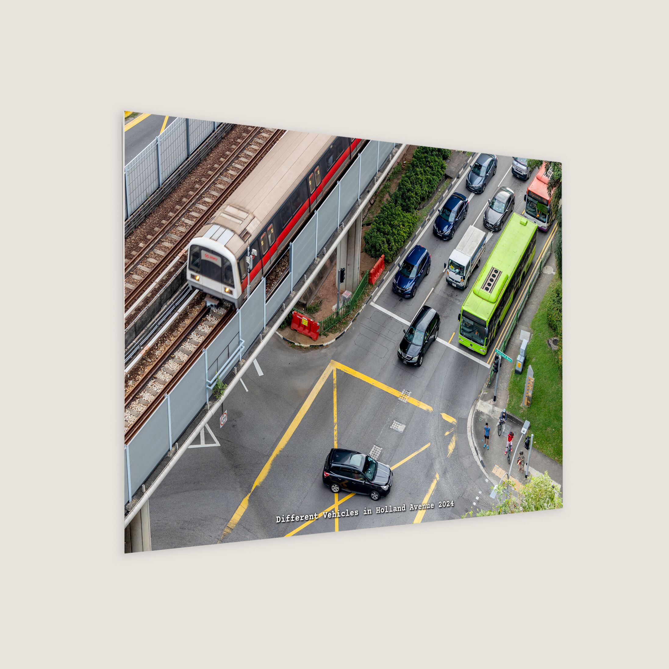 Aerial view from Block 8 on Holland Avenue, where the junction bustles with various modes of transport, including buses, the MRT, and private cars. This is a typical scene on the roads of present-day Singapore.