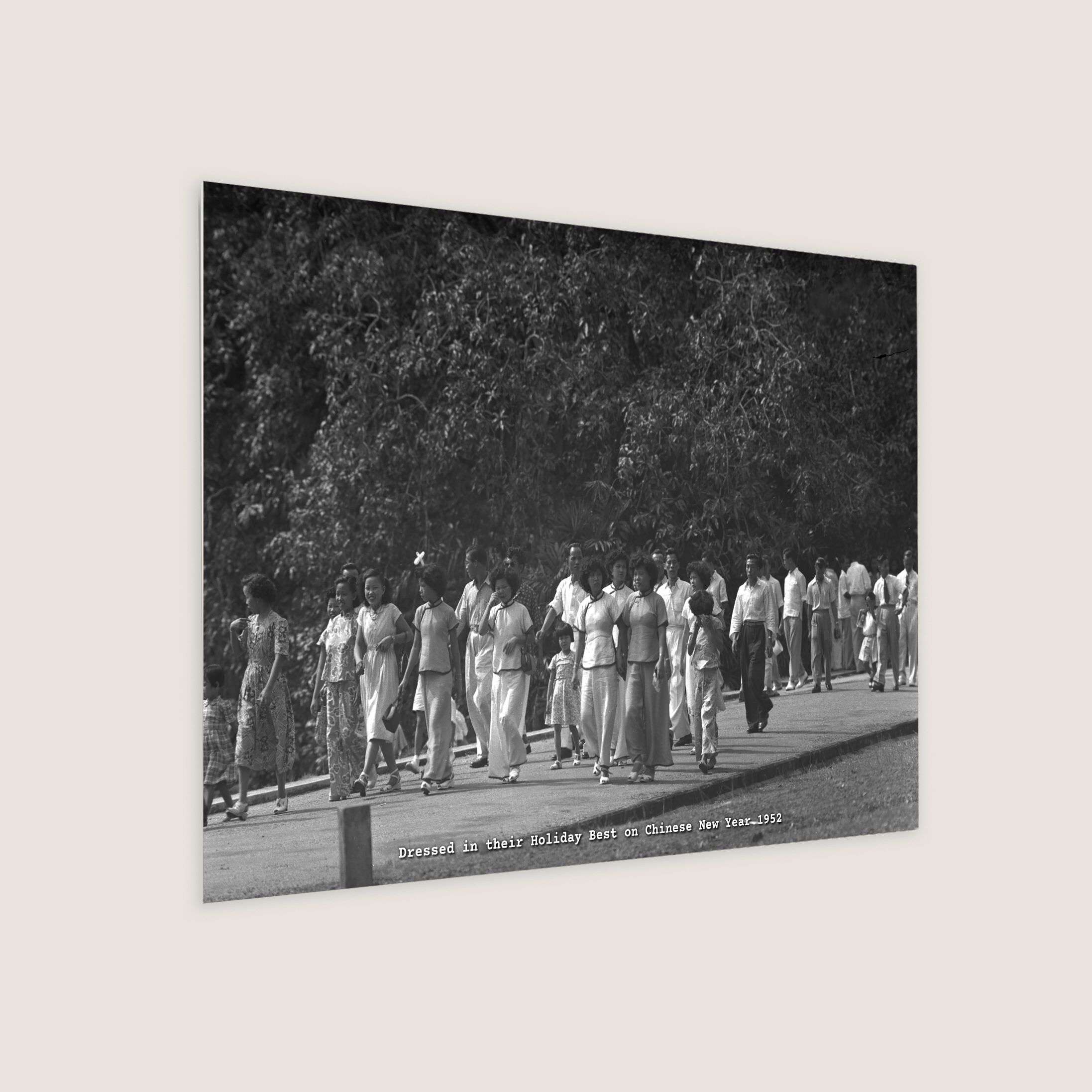 Holidaymakers dressed in their holiday best at Singapore Botanic Gardens on Chinese New Year, January 27, 1952. This was the largest influx of visitors that the Botanics Garden had seen for years at that point.
