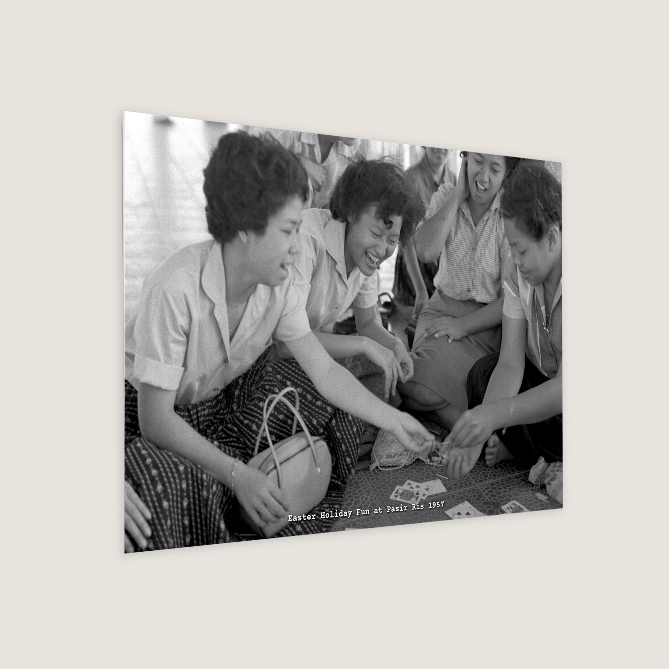 Easter holidaymakers having a game of cards at Pasir Ris.
