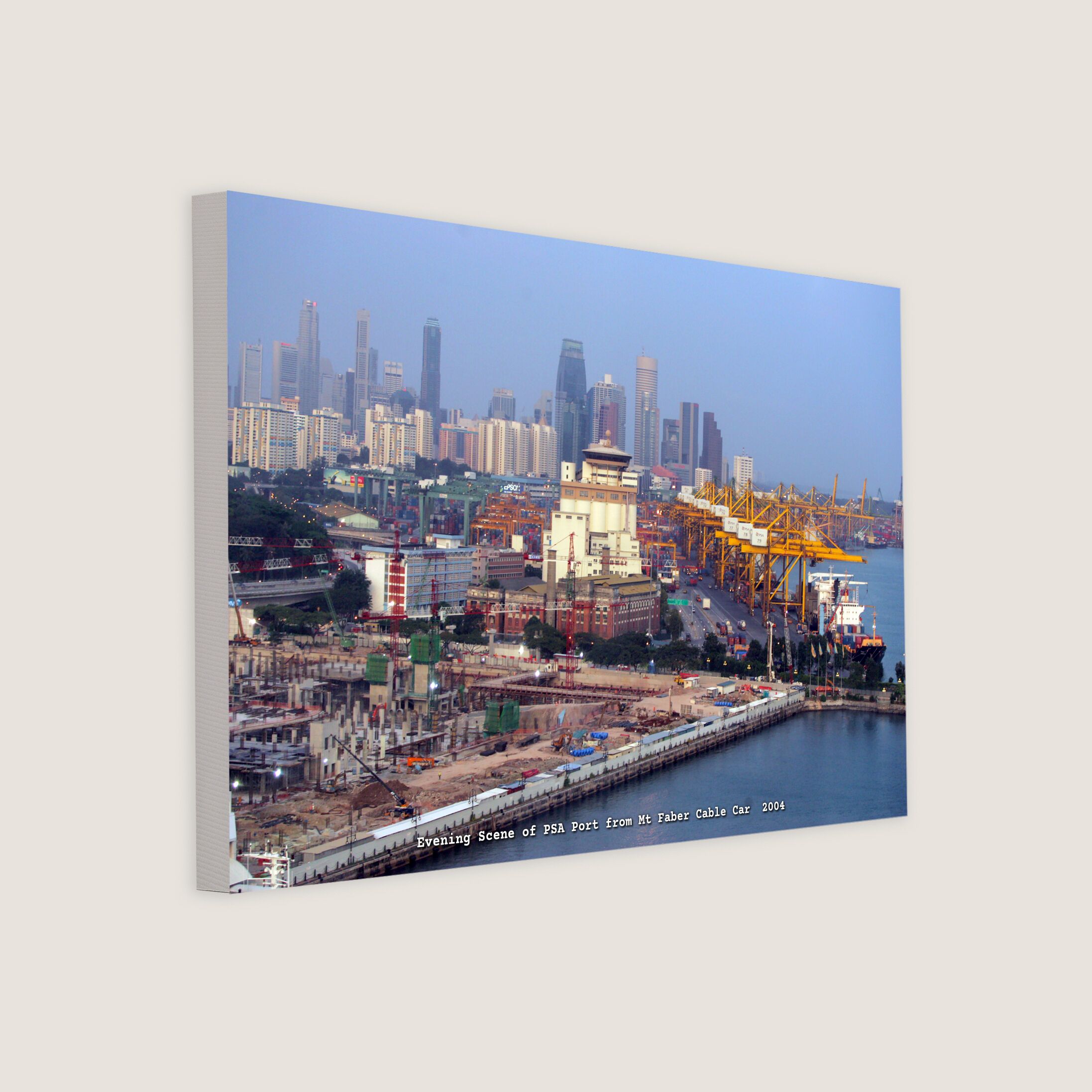 From the Mount Faber cable car, enjoy the view of the Tanjong Pagar Container Terminal and the Central Business District in the sunset. The building with the red brick wall is the former St. James Power Station.