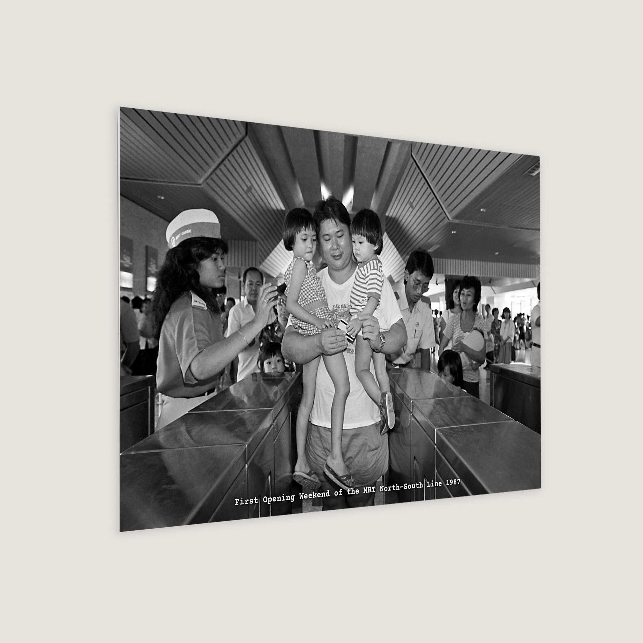 It was the first opening weekend of the MRT North-South Line. An MRT staff was seen helping a commuter carrying his two daughters at the fare gate of the Ang Mo Kio station.