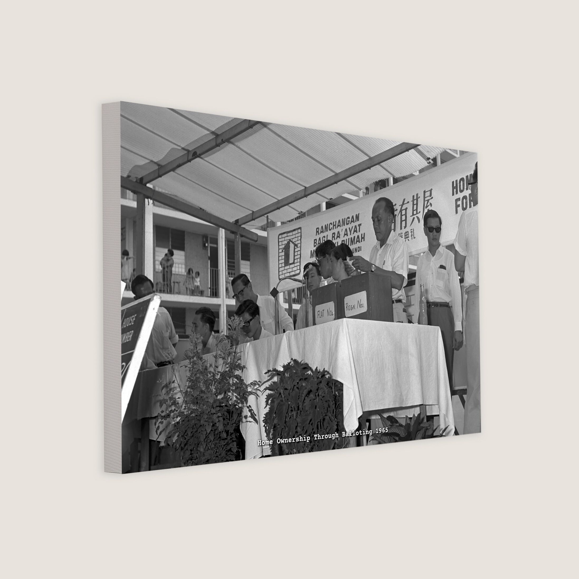 In November 1965, a ballot was held at Jalan Balam in MacPherson Estate for two 10-storey Housing and Development Board flats under the "Home Ownership for the People" Scheme. Introduced in 1964, this initiative marked a shift from rental-only public housing to affordable homeownership for lower to middle-income Singaporeans.