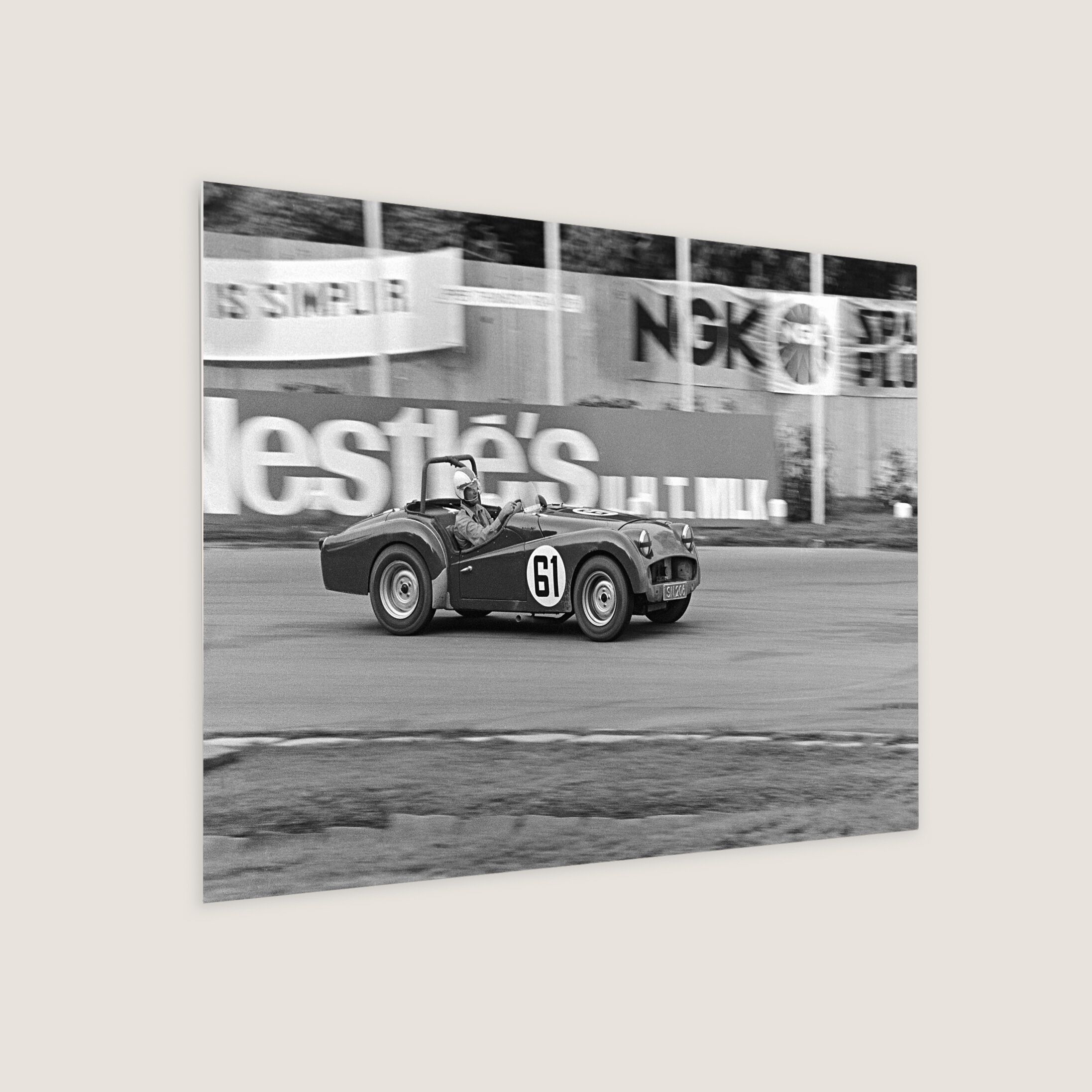 Ian Boughton (61) in his Triumph TR3A participating in the Clubman Sports Cars event during the 1972 Singapore Grand Prix at the Upper Thomson Road Circuit. The Clubman races were introduced to allow more entrants from Singapore and Malaysia to take part in the races, as the main events were dominated by international competitors.