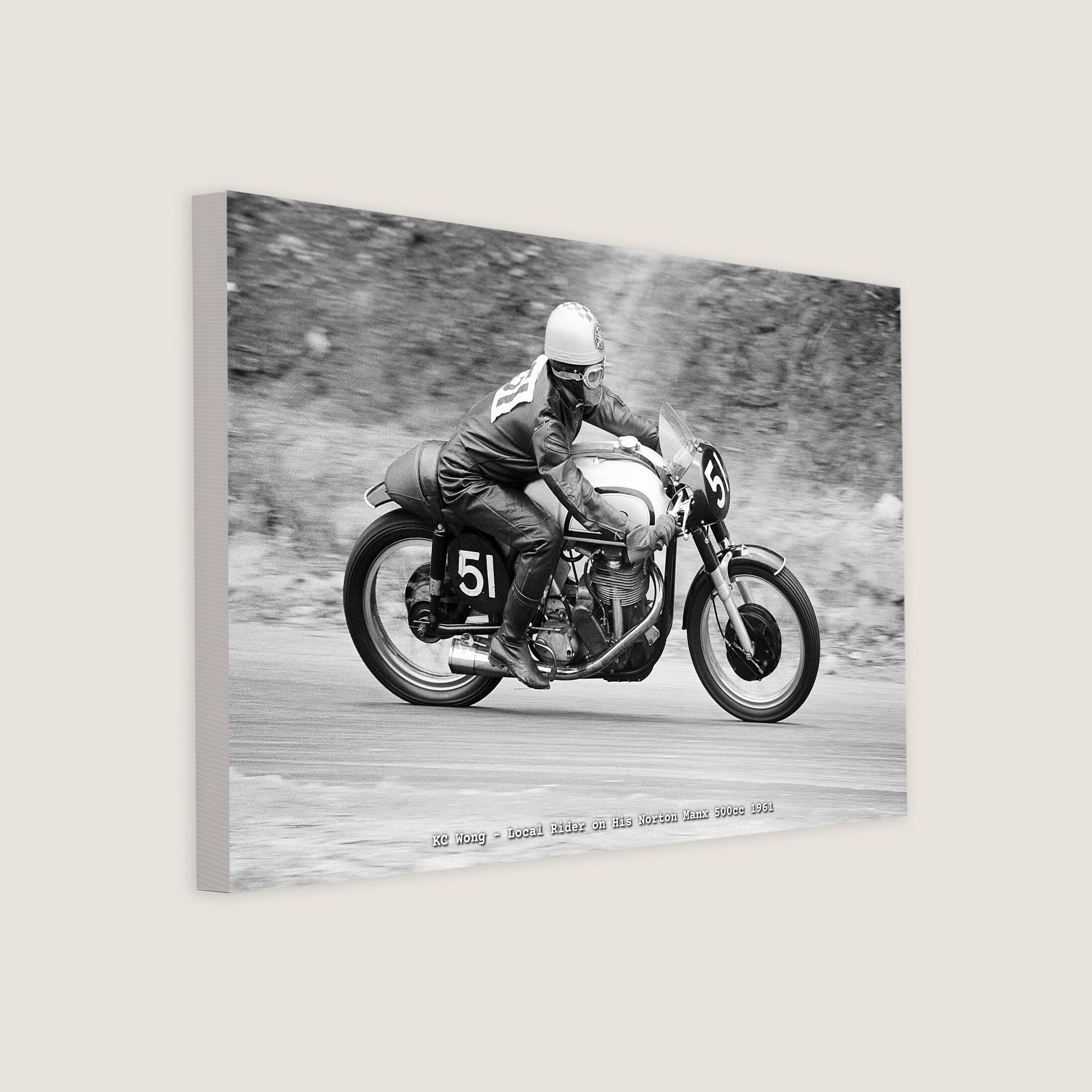 K.C. Wong (51) on his Norton Manx 500cc bike. He was a notable local rider.