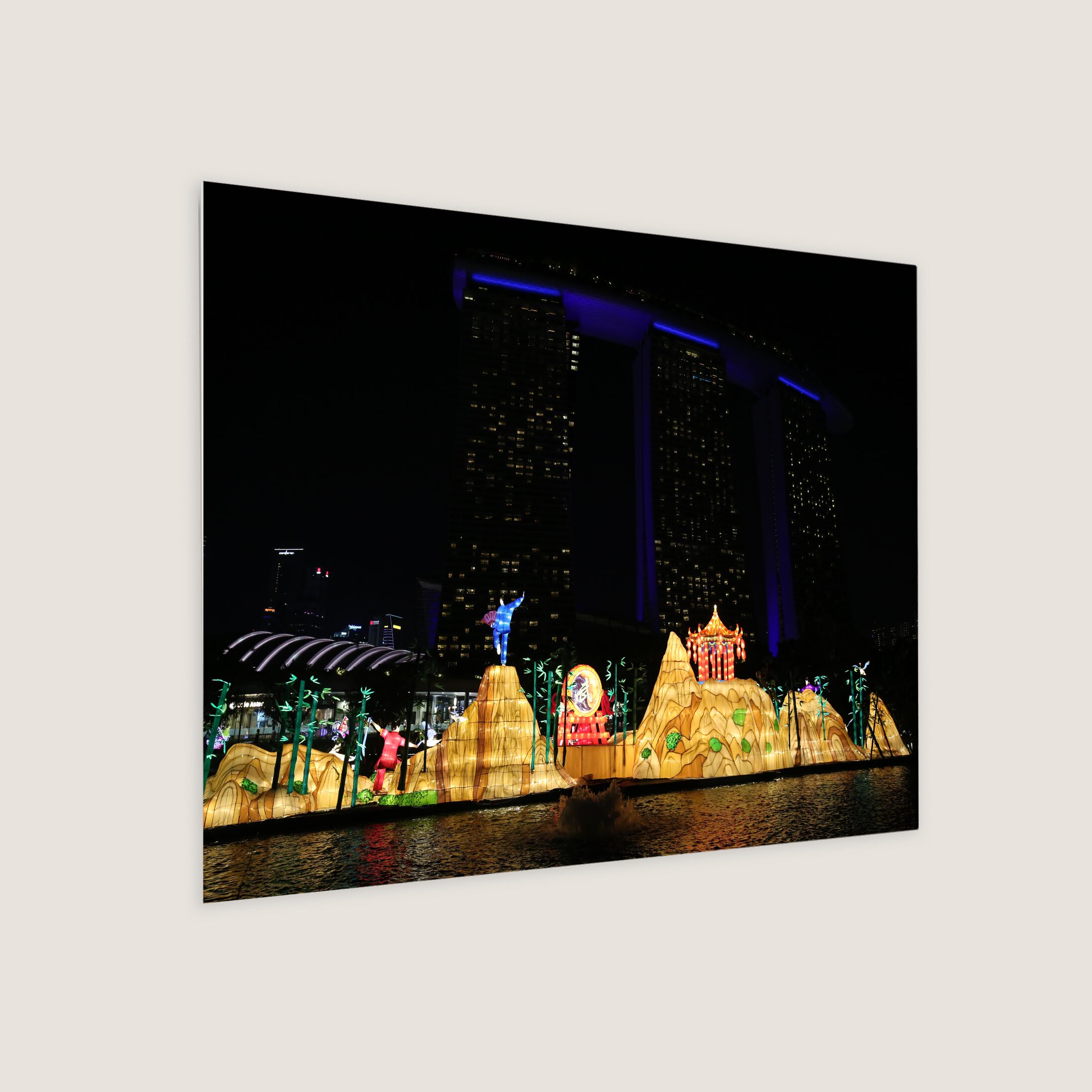 While celebrating the 7th "Marina Garden Mid-Autumn Festival" in 2019, Singapore's skyline at Marina Bay Sands was illuminated in the backdrop.