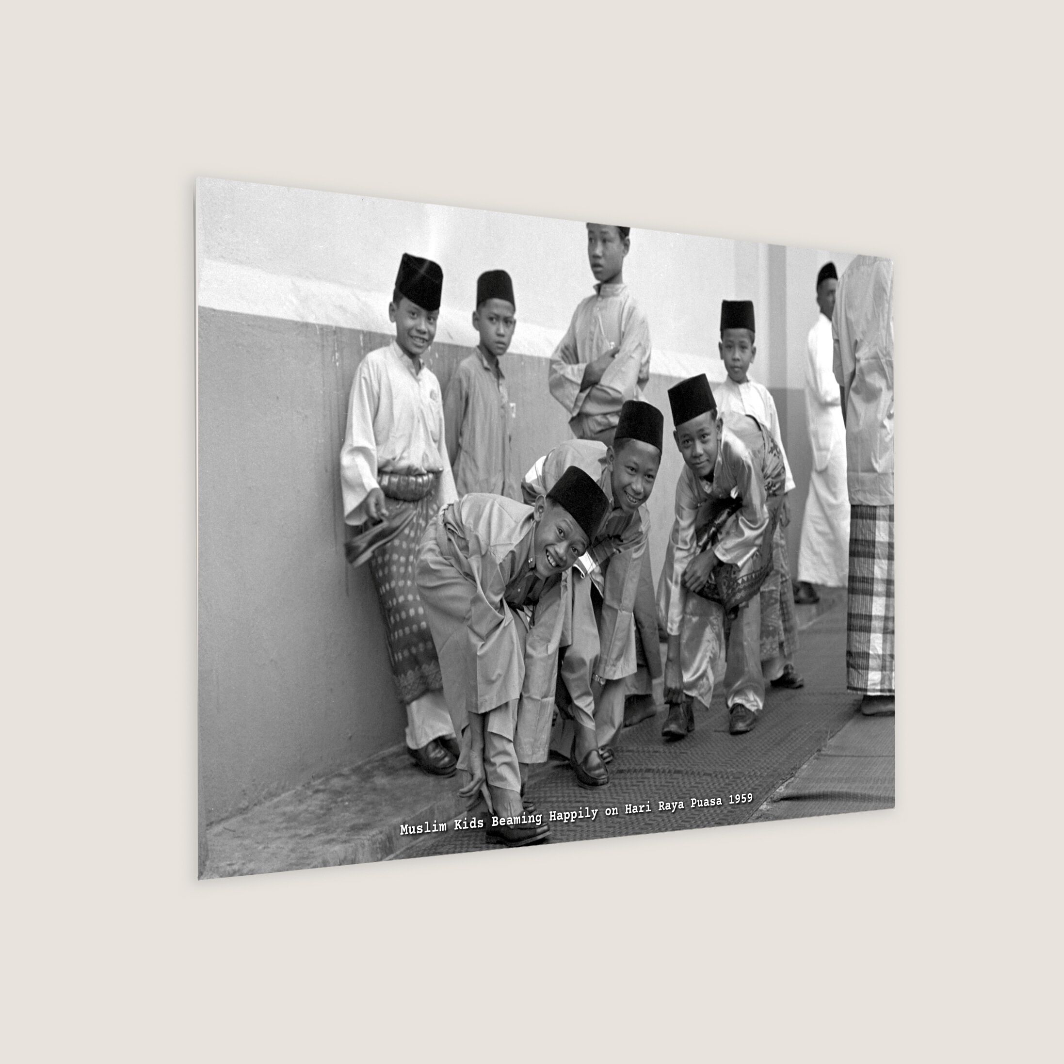 Happy Muslim children at the Sultan Mosque at Kampong Glam on Hari Raya Puasa. This Muslim celebratory occasion follows a month of fasting, known as Ramadan, which is a period of spiritual reflection and fasting for Muslims. The term 'hari raya' translates to 'big (or grand) day of rejoicing' in Malay. "