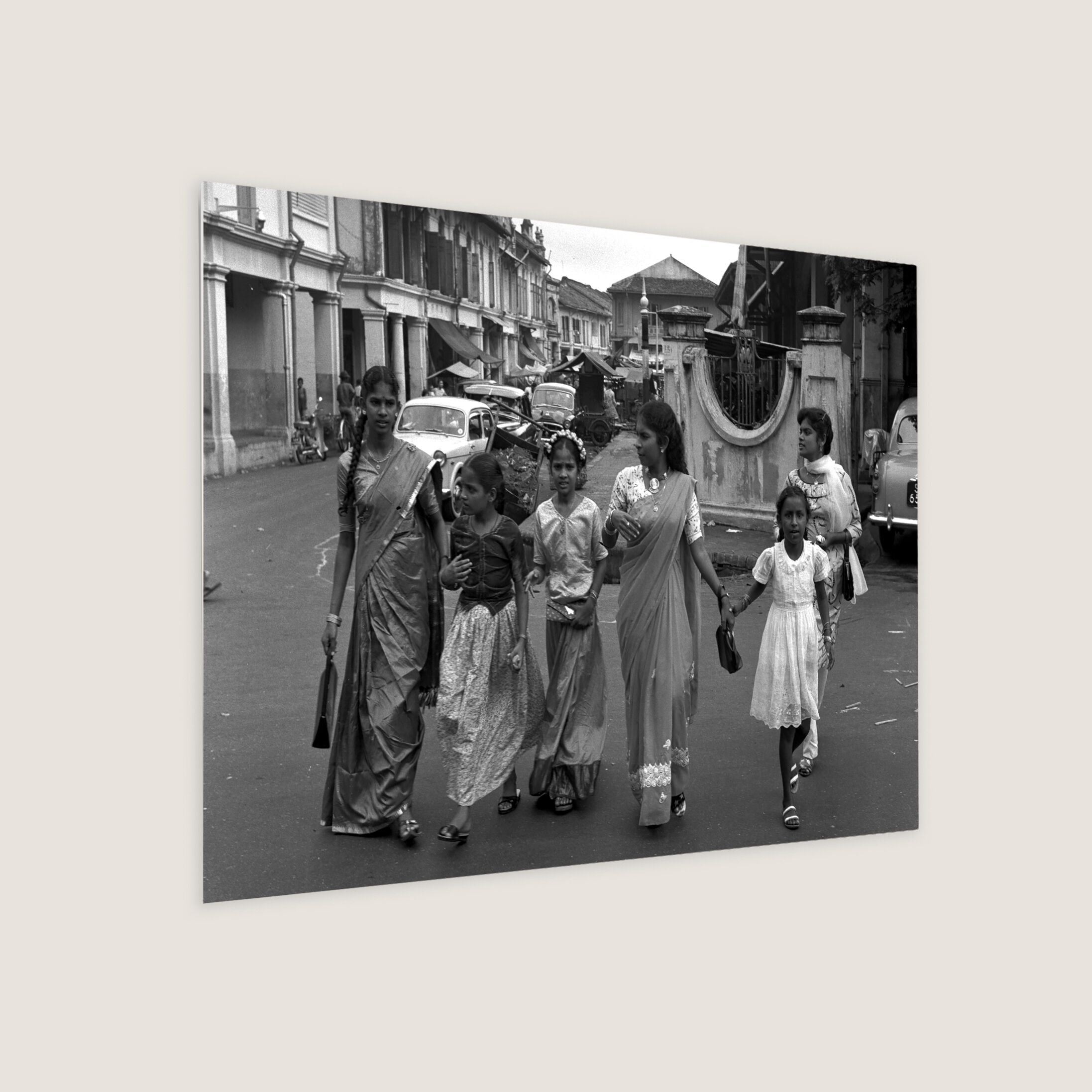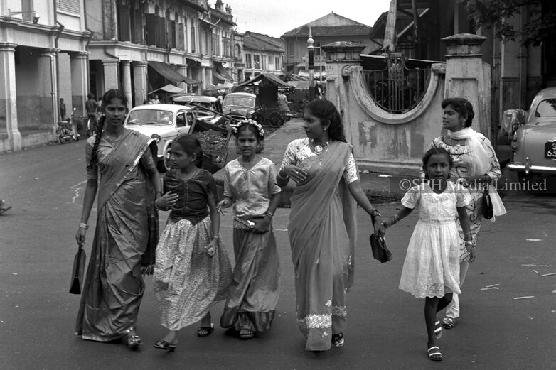 A family all dressed up for Deepavali celebrations. For centuries, people of the Indian subcontinent have worn draped clothing. The sari is believed to have evolved from an 18th-century ensemble of a skirt, bodice, and sheer veil that gracefully flowed around the body.