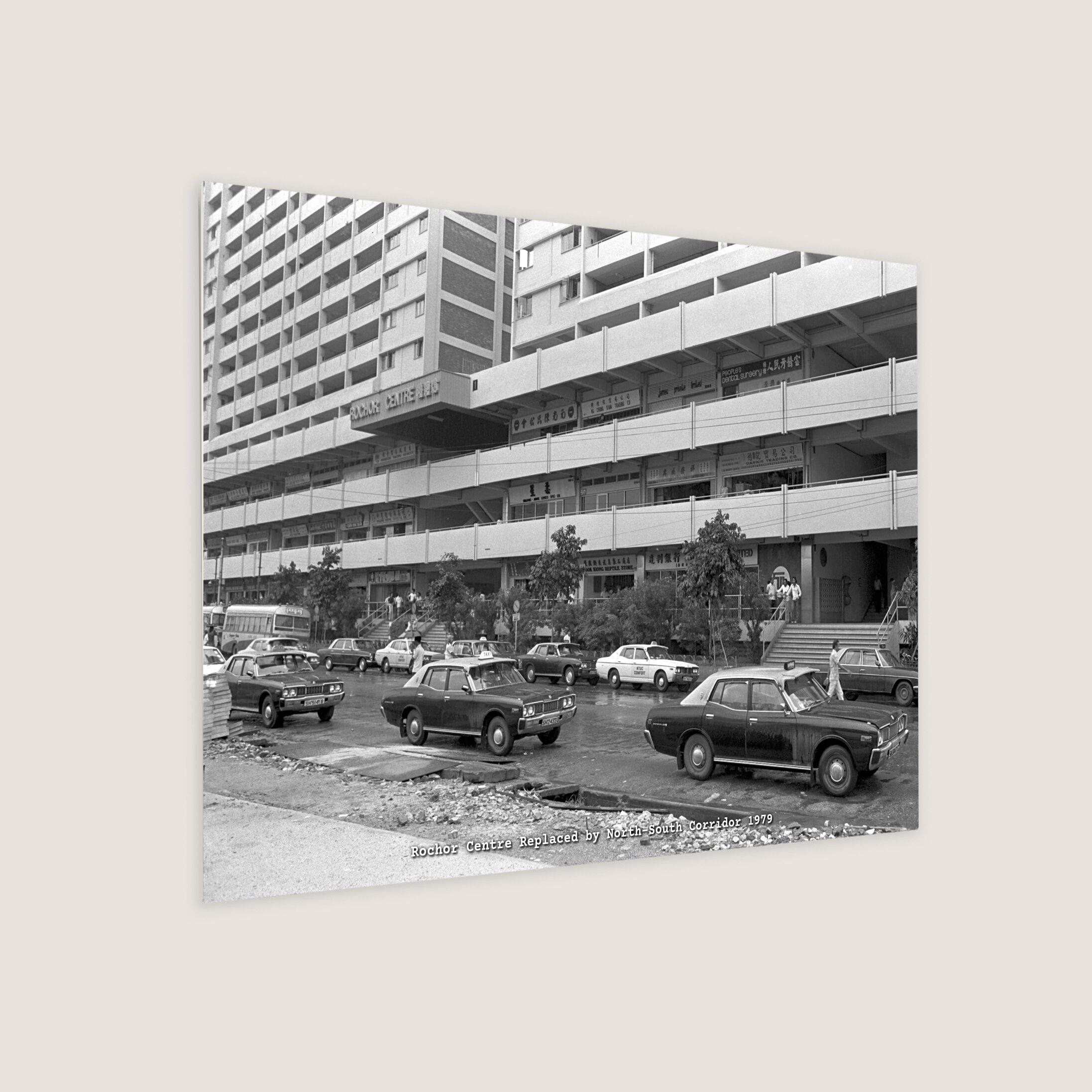 Taxis parked along Rochor Centre. The centre was one of the iconic architectures of Singapore when it was repainted with vibrant colours in 1994 before it was demolished to make way for the North-South Corridor.