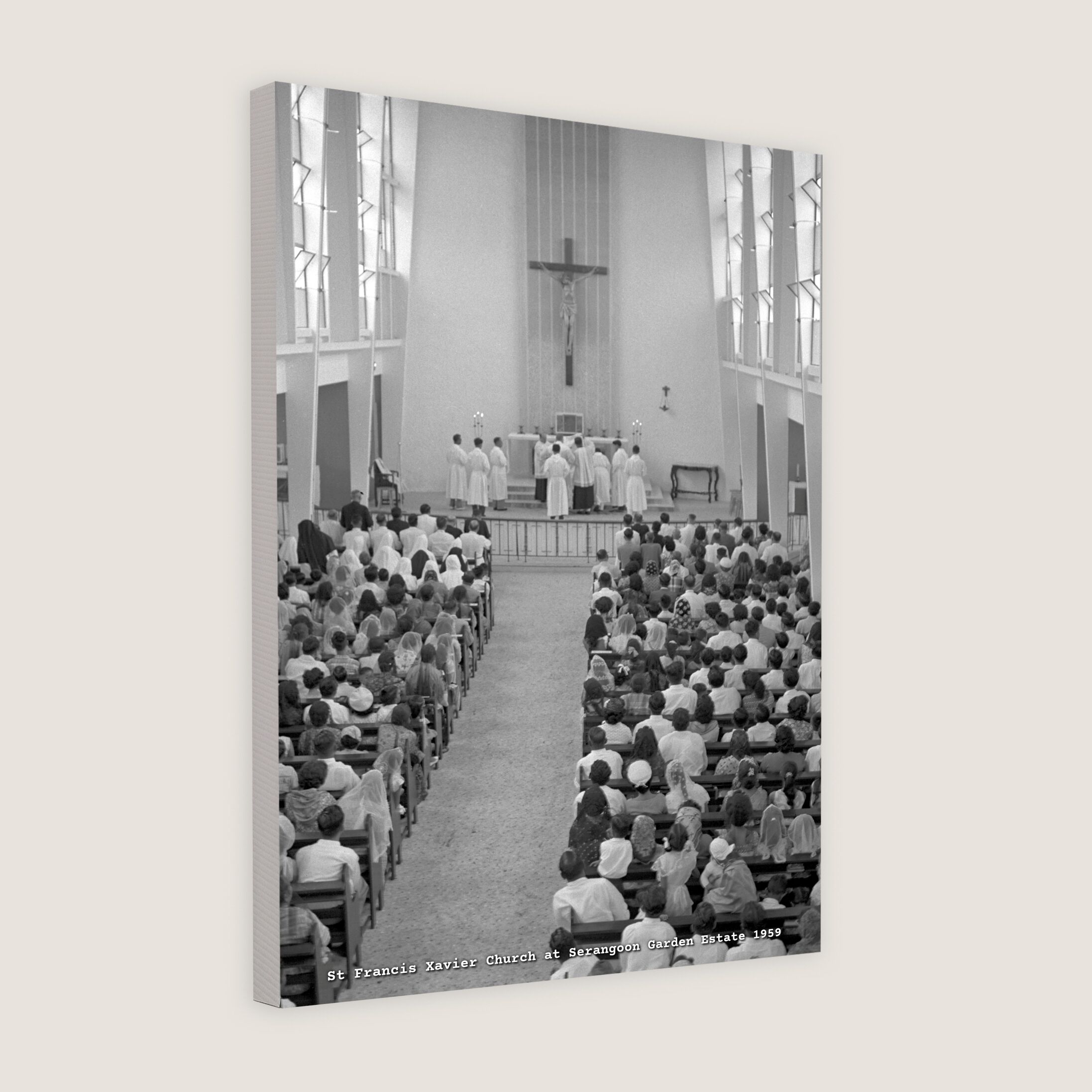 Congregation at the first service held at the new St Francis Xavier church at Serangoon Garden Estate, 11 January, 1959.
