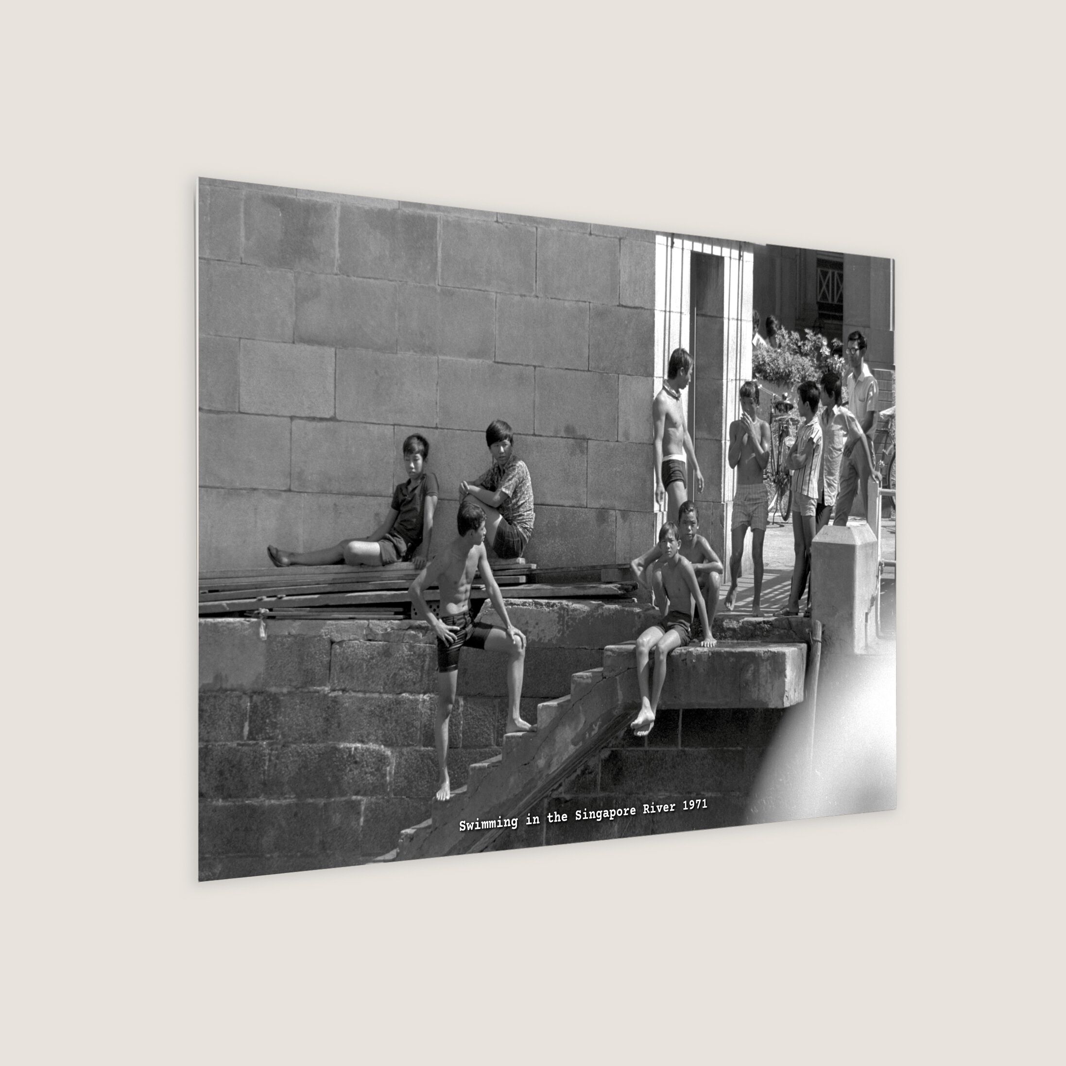 Teenagers are seen resting after a swim in the Singapore River near Cavenagh Bridge. Stretching across the Singapore River, the Cavenagh Bridge is the oldest bridge, completed in 1869. It was gazetted as a national monument in 2019.