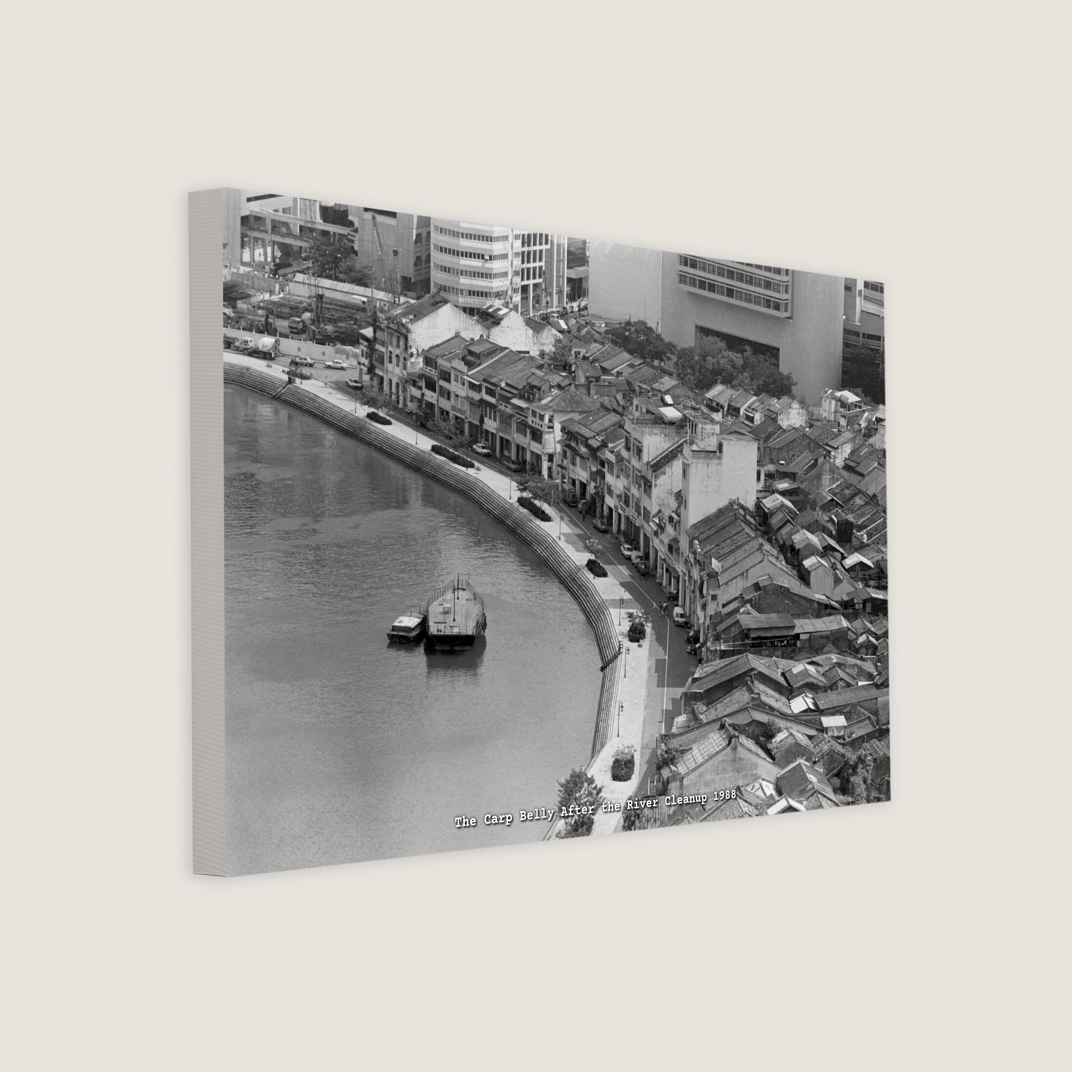 The photo captures Boat Quay after the Singapore River cleanup, marking a turning point in the area’s transformation. This area of the Singapore River is known as the 'Carp's Belly', due to its unique shape. Once teeming with trade and tongkangs, the riverfront entered a new chapter as part of wider urban redevelopment plans for the historic waterway and its surroundings.