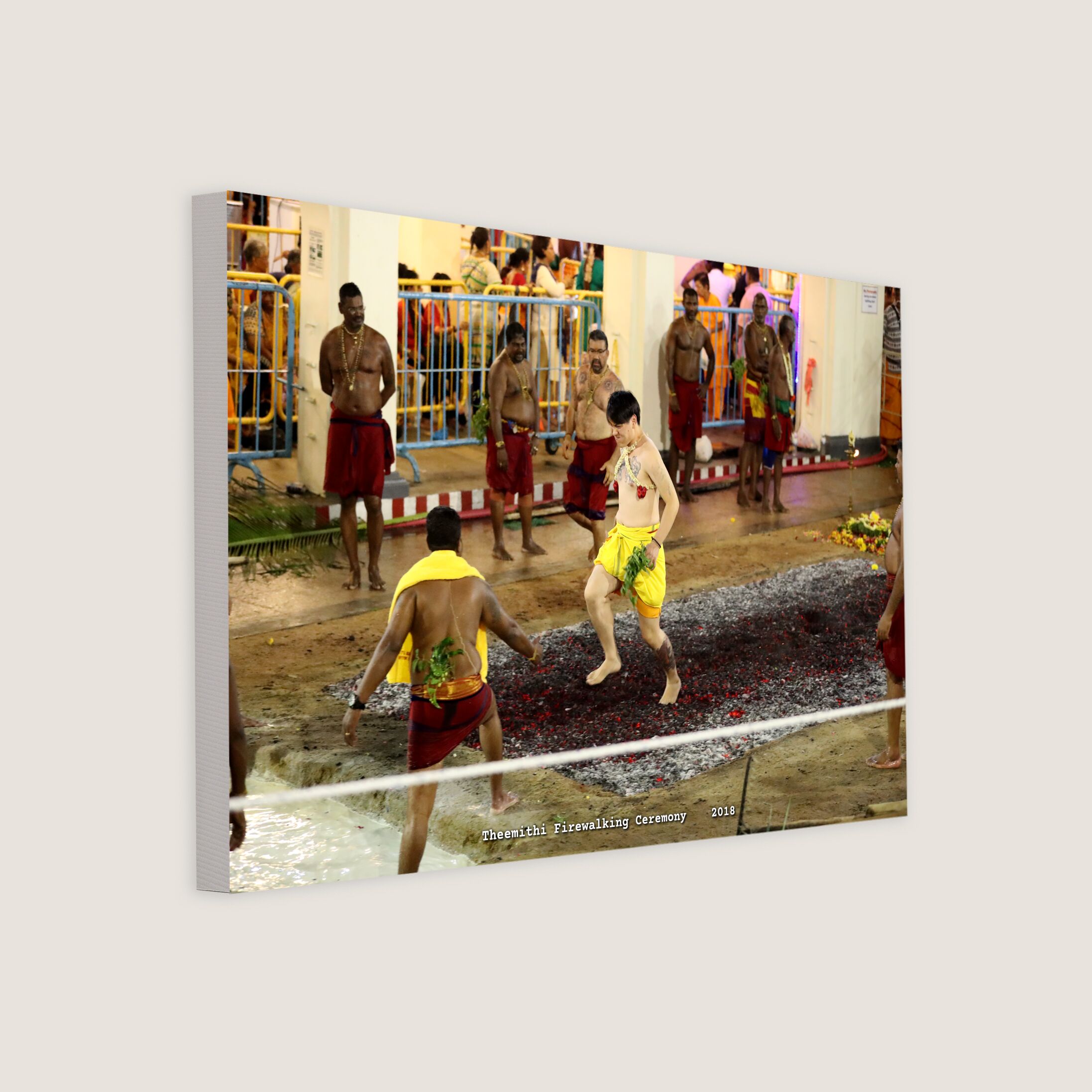 Each year on the Sunday a week before Deepavali, thousands of devotees, with a minority of non-Indians and non-Hindus, take part in a traditional Tamil ceremony. They walk barefoot over burning embers in the Theemithi firewalking ritual at Sri Mariamman Temple as a way of honouring the goddess Draupadi, concluding two months of sacred ceremonies showing deep faith and devotion.