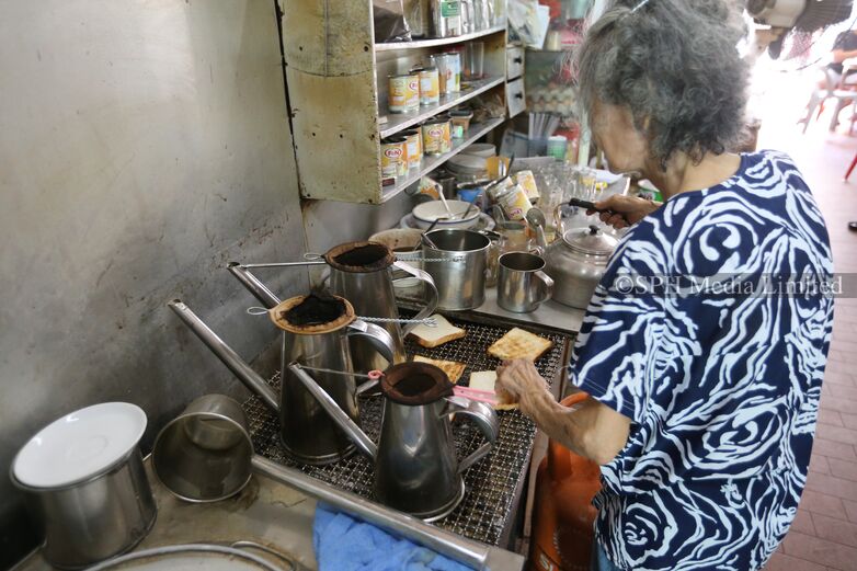 The photo shows a traditional Singapore coffee shop, where the owner prepares kaya toast and brews classic coffee and tea. Once central to local breakfast culture, these old-school establishments faced growing competition from coffee and tea franchise stores and the challenges of aging operators. Nonetheless, they remained iconic fixtures in Singapore’s culinary landscape.